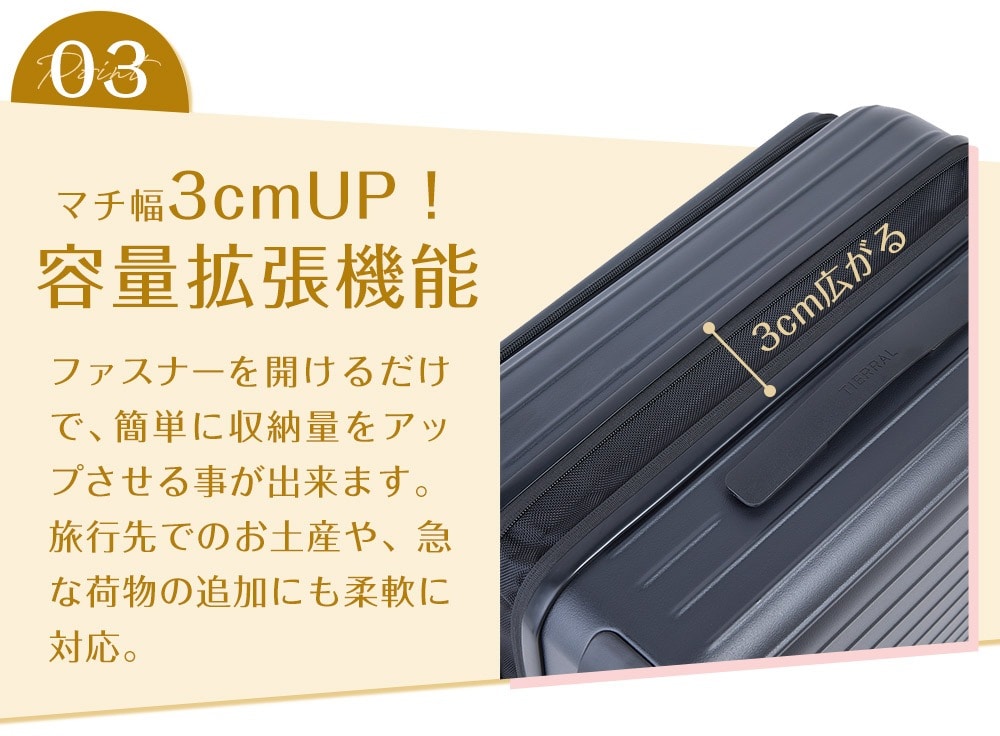 キーワード: 走行音が静か TTMR2*004 旅行鞄 旅行バッグ 中型 軽量 大容量 50L 55L 60L 容量拡張 黒色 白色 パステル かわいい 可愛い おしゃれ お洒落 かっこいい おすすめ オススメ シンプル 高級 ブランド ハードケース ハードタイプ ファスナータイプ ジッパータイプ 4輪 ダブルキャスター フロントポケット フロントオープン PC収納 ノートPC ノートパソコン タブレット収納 旅行 修学旅行 国内旅行 海外旅行 TSロック 1泊 2泊 3泊 4泊 5泊 ビジネス 出張 メンズ 男性 彼氏 レディース 女性 妻 プレゼント ギフトニューバッグワカマツ ニューバックワカマツ