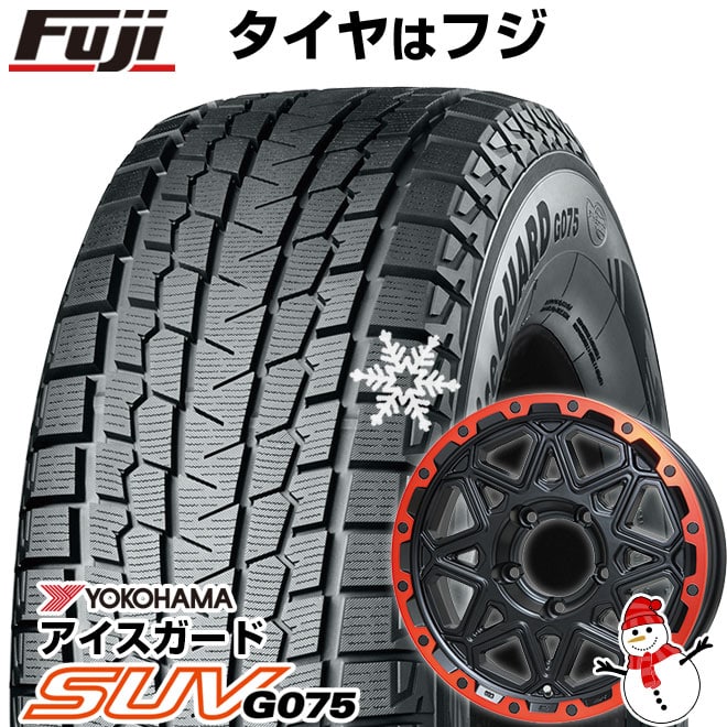 【新品】ジムニーシエラ用 スタッドレスタイヤ ホイール4本セット 195/80R15 ヨコハマ アイスガード SUV G075 レアマイスター LMG モンタグナ(マットブラック/レッドリム) 15インチ(送料無料)