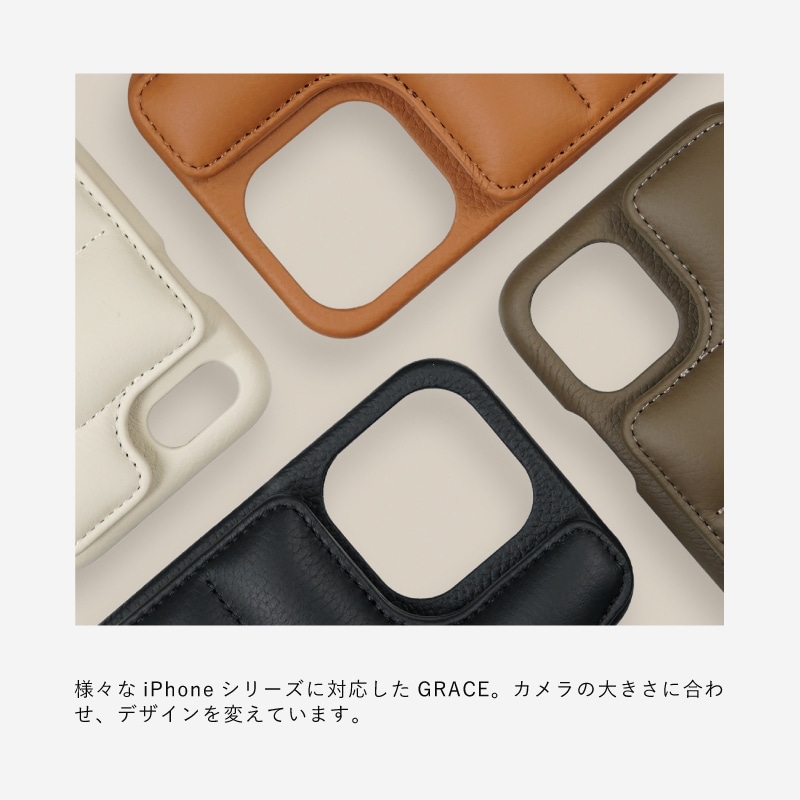 ・フランス語で「優雅さ、上品さ」を表す"GRACE"は、シンプルで洗練されたデザインが特徴のお財布機能つきiPhoneケースです。