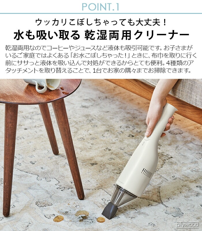 リビングやキッチンなど、場所を選ばず使えるコンパクトな乾湿両用の充電式クリーナーの登場です。