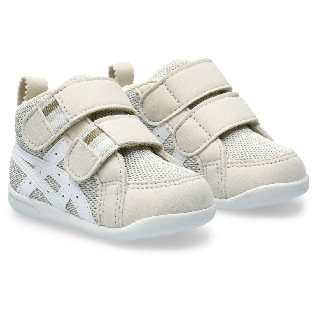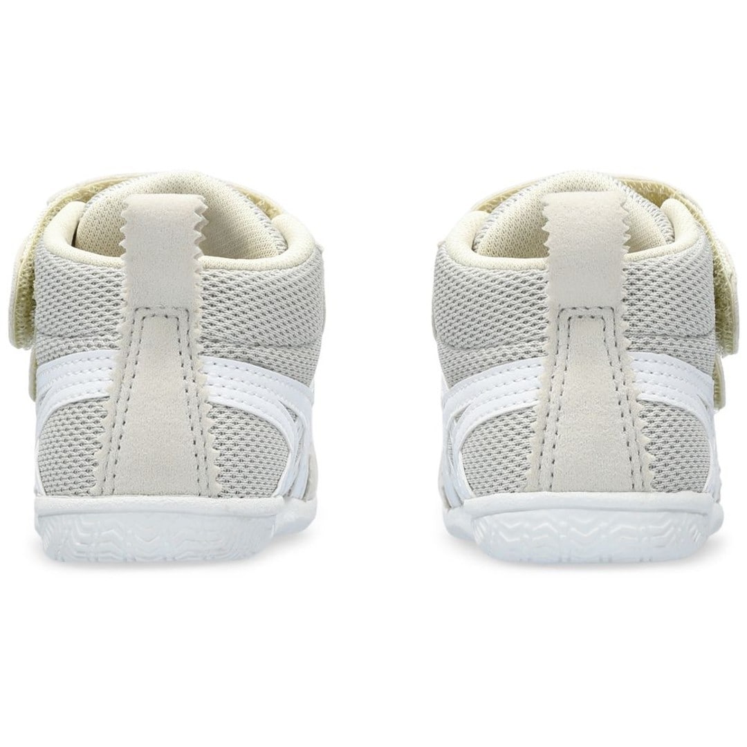歩きはじめの約3カ月間の赤ちゃん向けに展開する「FIRST」シリーズのキッズシューズ。つま先を大きく巻き上げる形状でつまずきにくくし、スムーズな歩行をサポートします。さらに靴底全体のエッジを丸くすることで、ぐらつきやすい赤ちゃんの歩行で起こりがちな引っかかりも軽減。足に触れるインナー材には、吸汗速乾性にすぐれ、肌に優しい低刺激性の素材「メディエル」を採用しています。フィット感の調節がしやすい2本ベルトで、履き口が大きく開くため脱ぎ履きもしやすいです。ウエアとコーディネートしやすい、ネイビー×ホワイトをはじめとするカラーバリエーションです。ファブレからアミュレへ商品名が変更になりました。■キーワードファーストシューズ、キッズ、子供、ベビー、赤ちゃん、ベビーシューズ●素材本体=ポリエステル・人工皮革 アウターソール=ゴム底