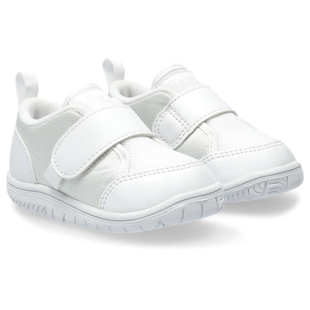 約1歳から3歳の幼児向けに展開する「BABY」シリーズ。保育園などの室内履きや、リトミックなど屋内の教室で履ける上履きです。扇形のつま先部分は足ゆびをのびのびと動かすことができ、踏ん張りやすいのが特徴。インナーソールには抗菌・消臭効果のあるシャインアップ、汗をすばやく吸収・拡散してドライ感を保つウォーターマジックを採用。靴の中を快適に保ちます。脱ぎ履きがしやすい1本ベルトタイプで、アッパーの甲の部分には通気性にすぐれたラッセルメッシュを使用しています。アウターソールは外履きも可能なグリップ性や耐久性を備えています。■キーワードスニーカー、キッズ、子供、小学生、ウォーキングシューズ、通学●素材本体=ポリエステル・人工皮革 アウターソール=ゴム底