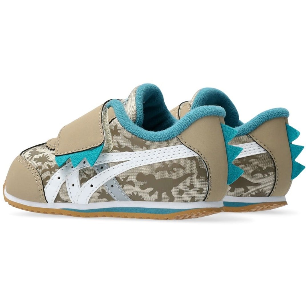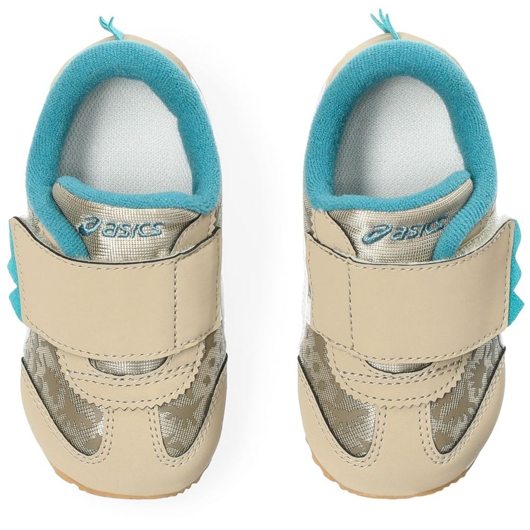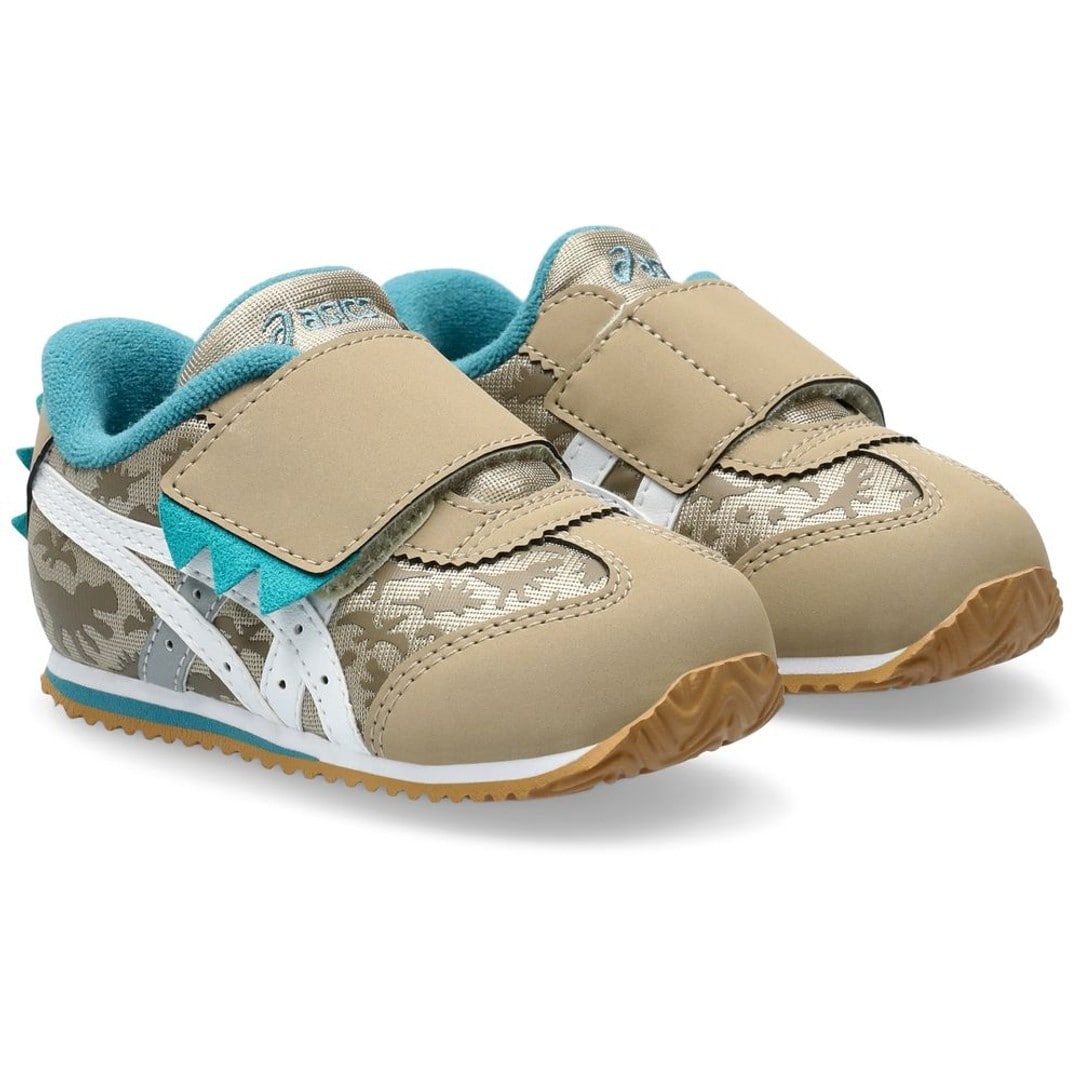 約1歳から3歳の幼児向けに展開する「BABY」シリーズのローカットシューズ。子どもたちの大好きな恐竜をモチーフにした、遊び心のあるアイテムです。かかとの安定性を重視し、かかとを包み込む立体的な中敷を採用しています。扇形のつま先部分は足ゆびをのびのびと動かすことができ、踏ん張りやすいのが特徴。インナーソールの素材には抗菌・消臭効果のあるシャインアップと、汗をすばやく吸収、拡散してドライ感を保つウォーターマジックを採用。靴の中を快適に保ちます。甲の内側を1枚の布で包み込むような構造のキモノフィットタンを採用。フィット感を高め、アーチ部の倒れ込みを軽減します。アッパーはいろいろな種類の恐竜の姿や足跡などをプリントしたデザインで、どんな恐竜がいるのか親子で見つけるのも楽しみ。かかと部とベルトには、恐竜の背中をイメージするギザギザのモチーフを配置しています。街灯や車のライトなどの光を反射する再帰反射材(リフレクター)を外側のアシックスストライプの一部に採用しています。■キーワードスニーカー、キッズ、子供、小学生、ウォーキングシューズ、通学●素材本体=ポリエステル・人工皮革 アウターソール=ゴム底