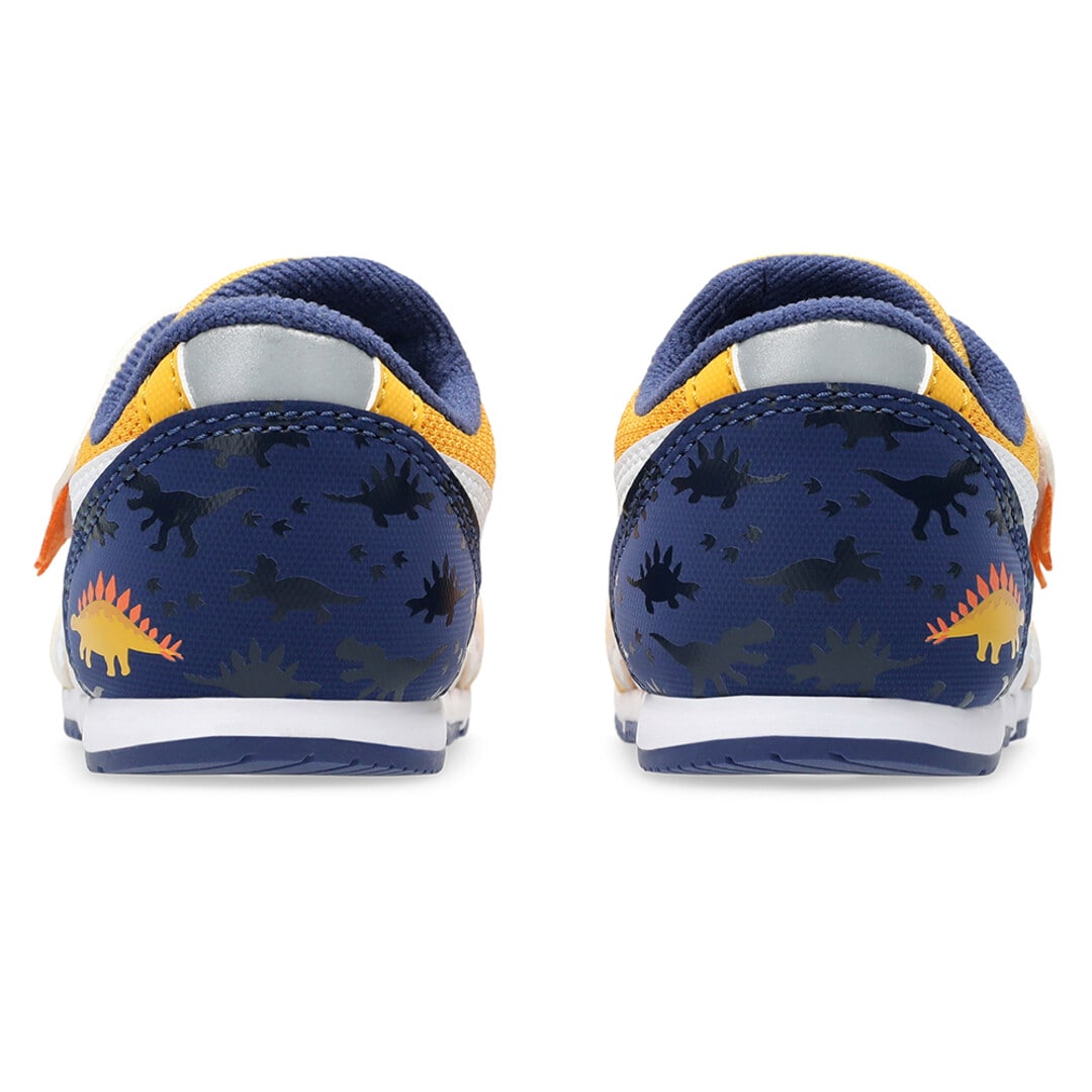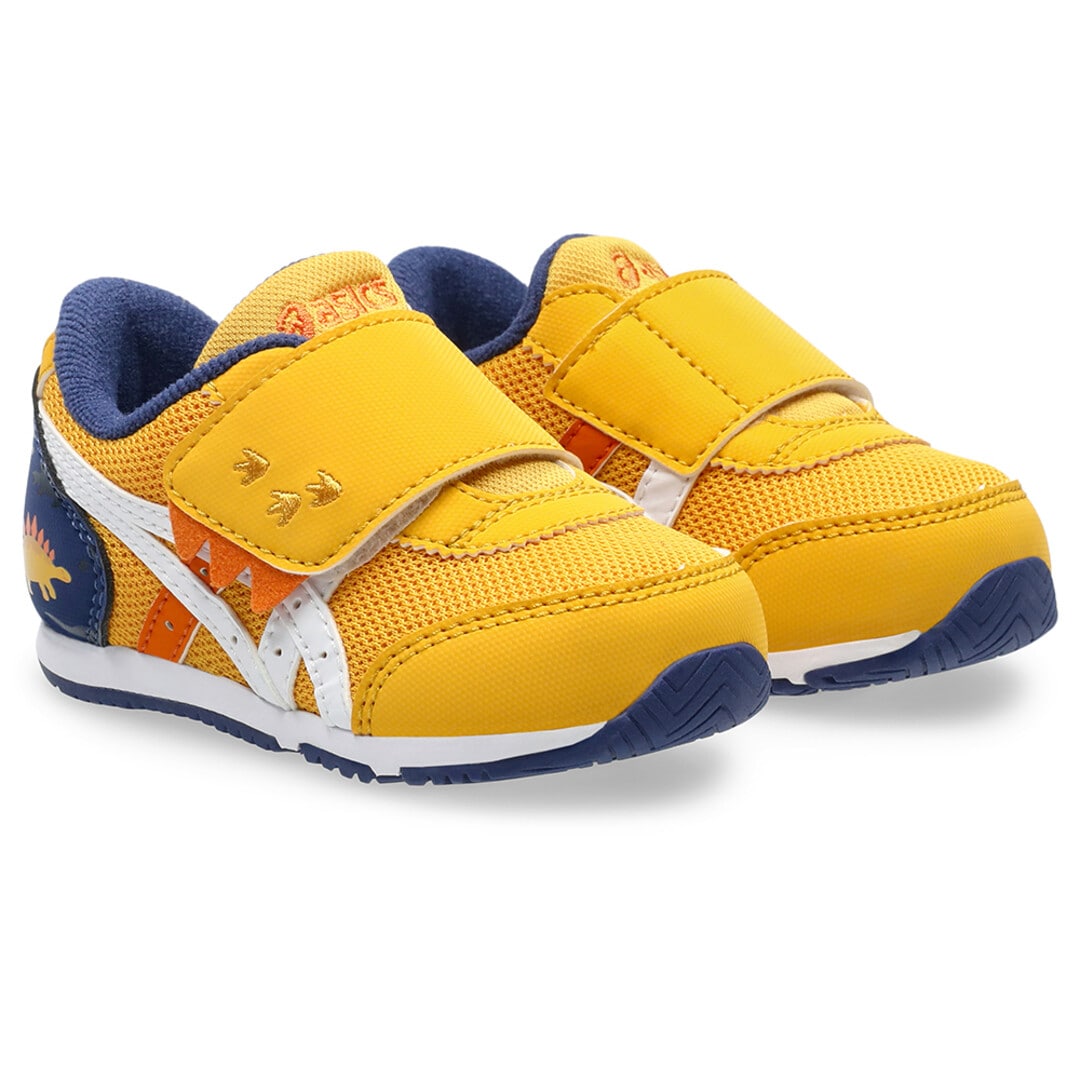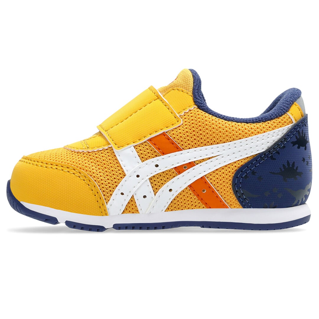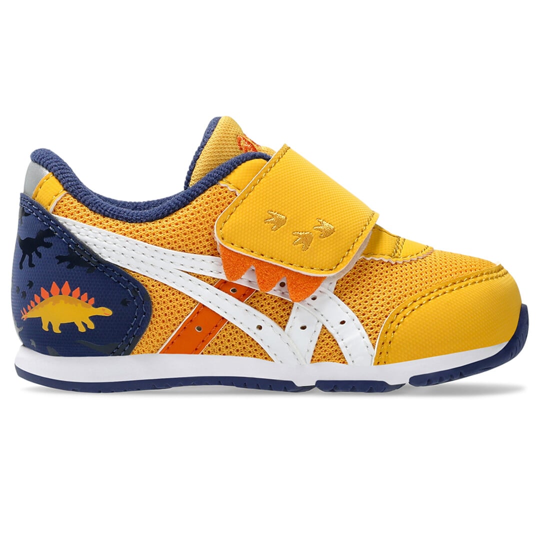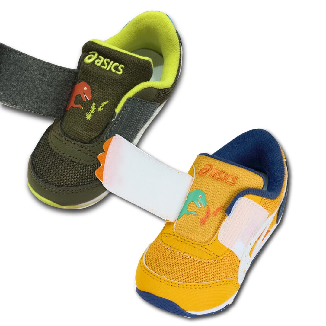 約1歳から3歳の幼児向けに展開する「BABY」シリーズのローカットシューズ。子どもたちの大好きな恐竜をモチーフにした、遊び心のあるアイテムです。扇形のつま先部分は足ゆびをのびのびと動かすことができ、踏ん張りやすいのが特徴です。アウターソールは、足の屈曲位置に合わせて溝を配置した「フレックスグルーヴ」を採用。足の動きにしなやかに追従します。かかとの安定性を重視し、かかとを包み込む立体的なインナーソールを使用しています。インナーソールの表面材には抗菌・消臭効果のあるシャインアップと、汗をすばやく吸収・拡散してドライ感を保つウォーターマジックを採用。靴の中を快適に保ちます。甲の内側を1枚の布で包み込むような構造のキモノフィットタンにより、フィット感を高め、アーチ部の倒れ込みを抑えます。アッパーは通気性に優れたラッセルメッシュを使用。ベルトには恐竜の背中をイメージするギザギザのモチーフと恐竜の足跡の刺繍を配置し、ベルトをめくると恐竜が現れる遊び心のあるデザイン。かかと部にも恐竜のプリントを配置しています。街灯や車のライトなどの光を反射する再帰反射材(リフレクター)をかかと部に配置しています。■キーワードスニーカー、キッズ、子供、小学生、ウォーキングシューズ、通学●素材本体=人工皮革・合成皮革・ポリエステル アウターソール=ゴム底