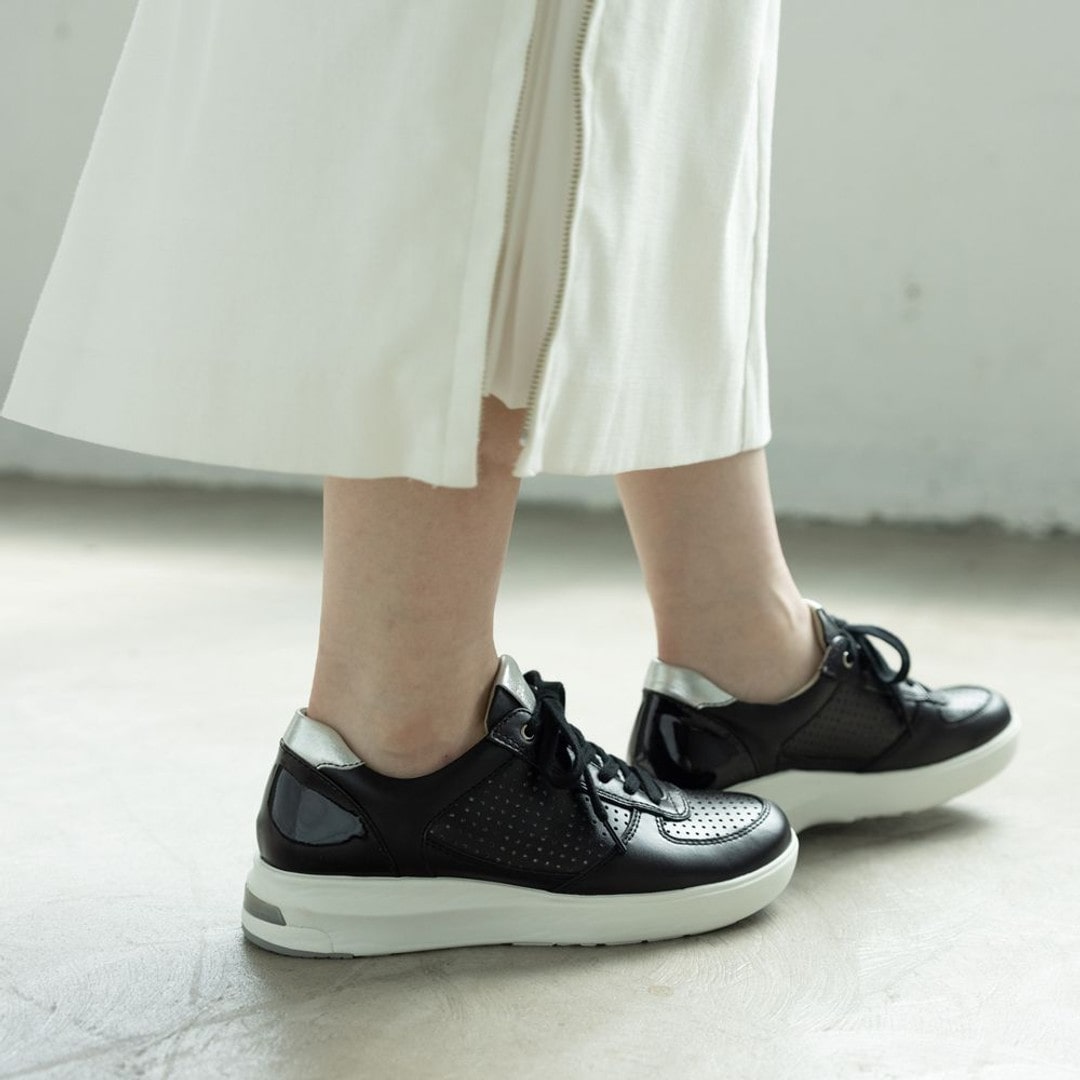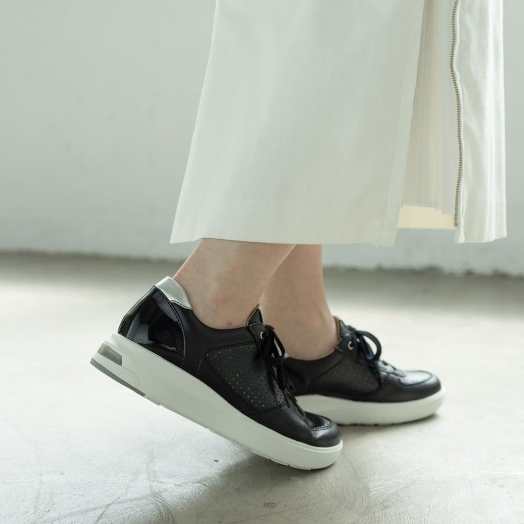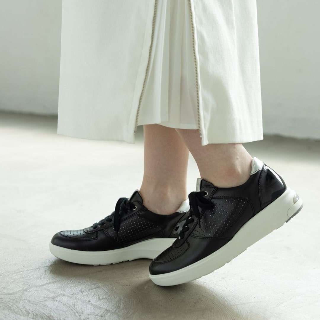 素足のような軽さと、長時間の歩行にも対応する機能性が特徴のライトカジュアルシューズ、ペダラシリーズのウォーキングスニーカー。アッパーにパンチング加工を施し、さらにライニングにラッセル構造のメッシュを使用して、肌当たりのよさと通気性に配慮しています。ミッドソールにはクッション性と反発性を併せもつSPEVAを採用し、かかと部に衝撃緩衝材GELを搭載。さらに「グルーヴチェンジ」構造のソールで歩行時の安定性を追求しています。ウォーキングシーンを快適にする、軽くやわらかな履き心地の1足です。●素材本体=天然皮革(牛革)/人工皮革 アウターソール=ゴム底