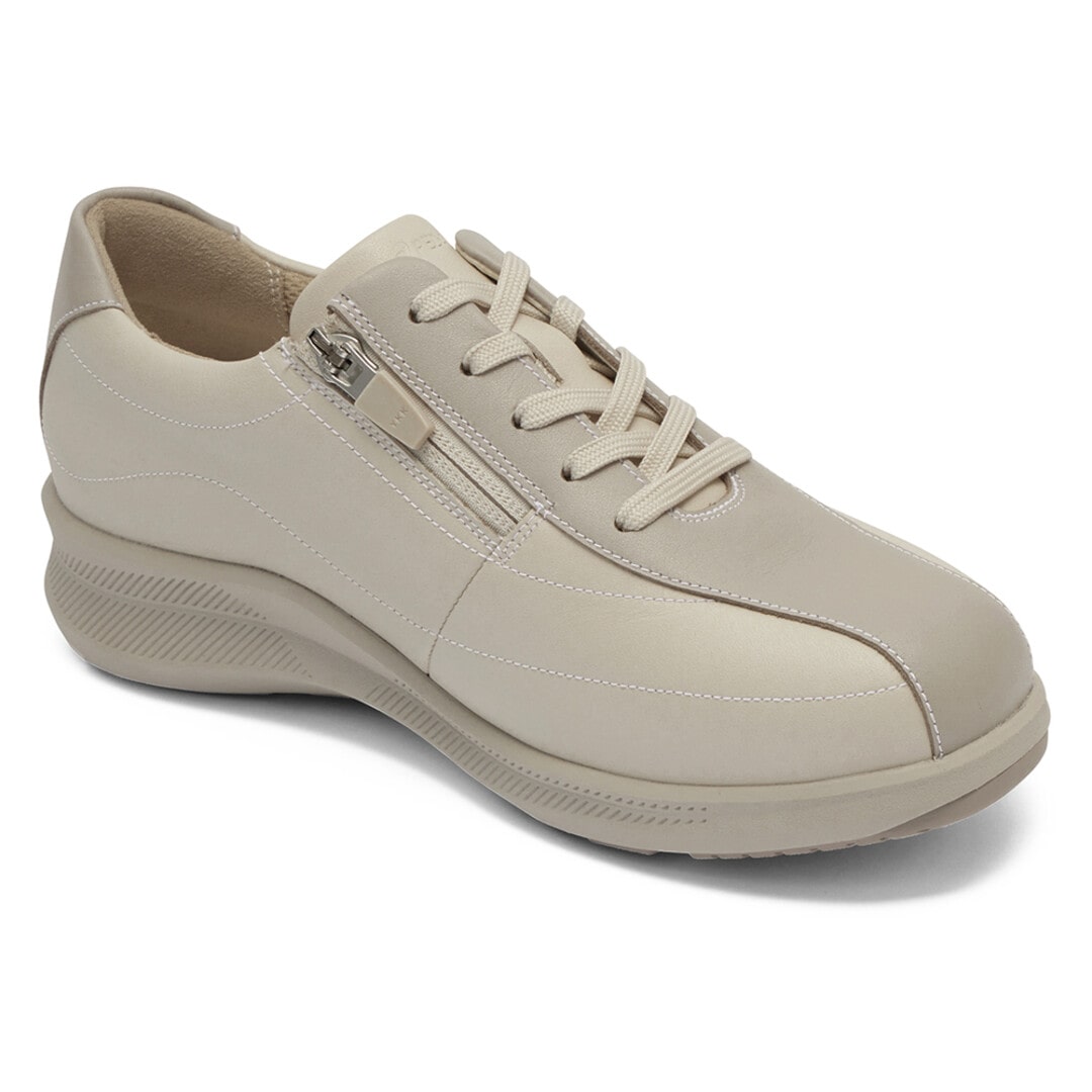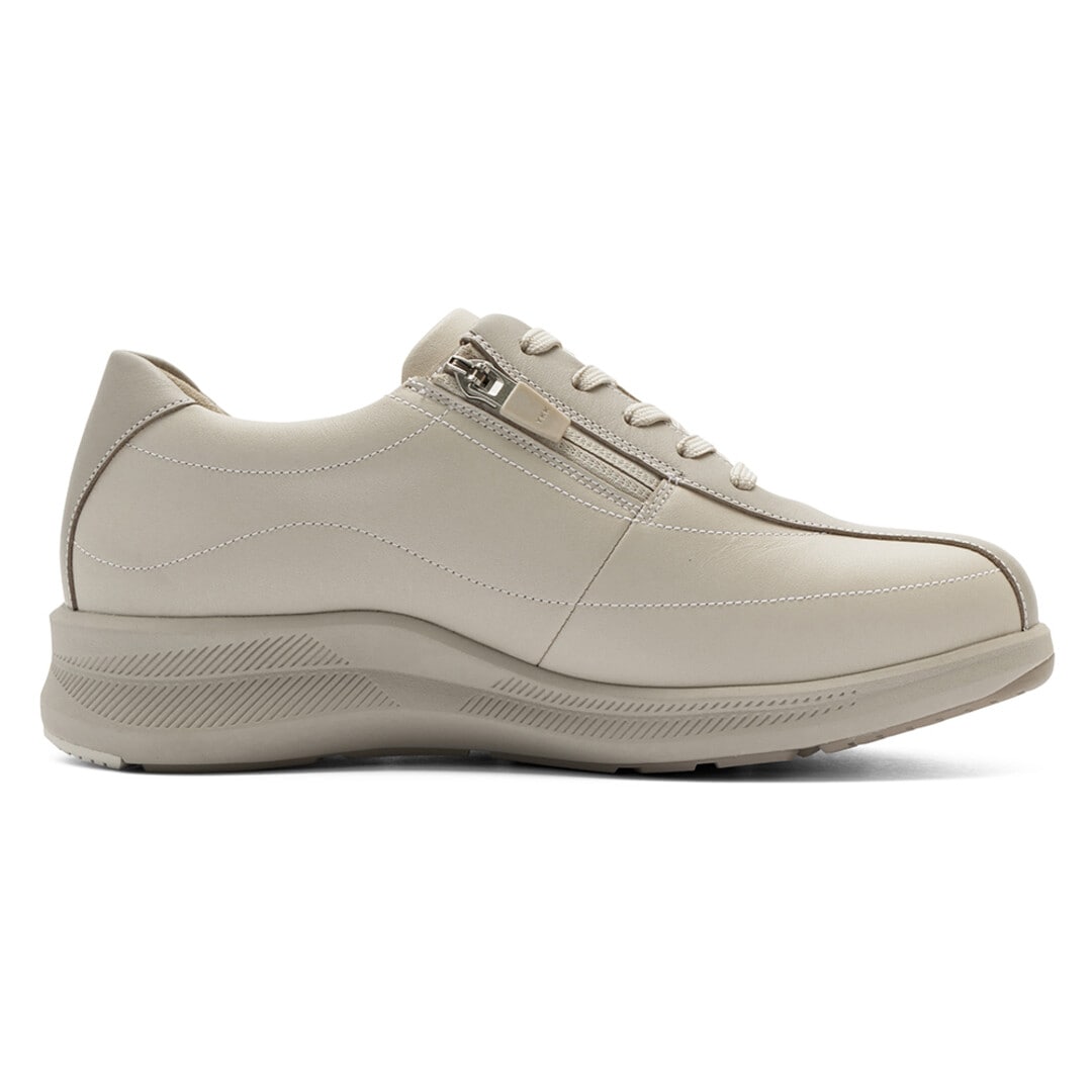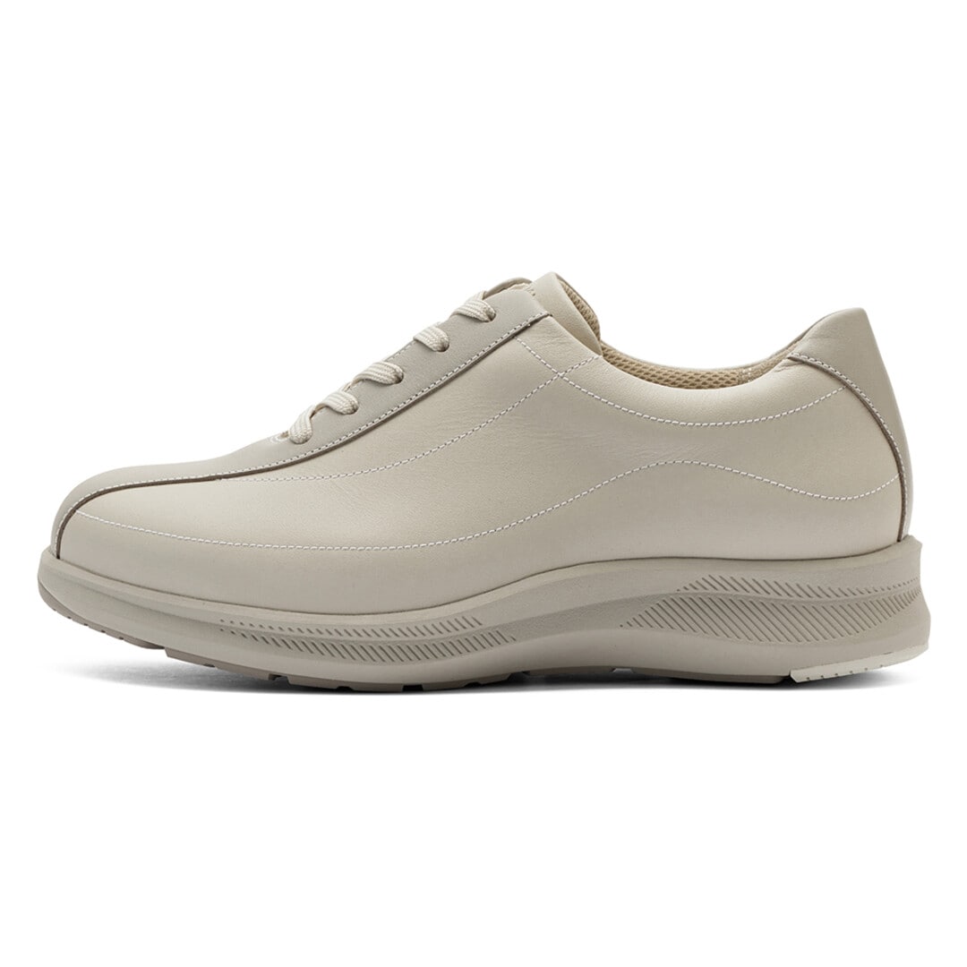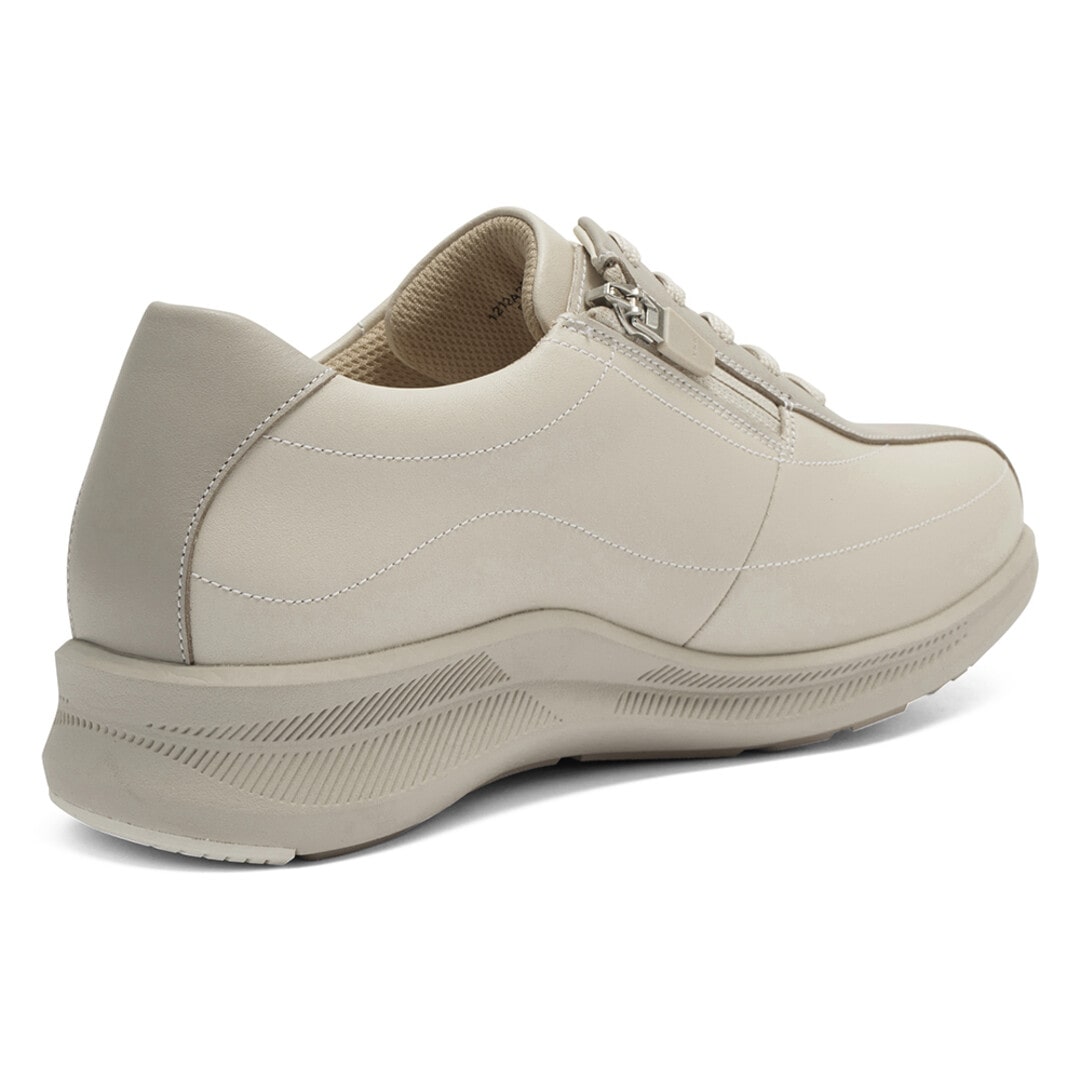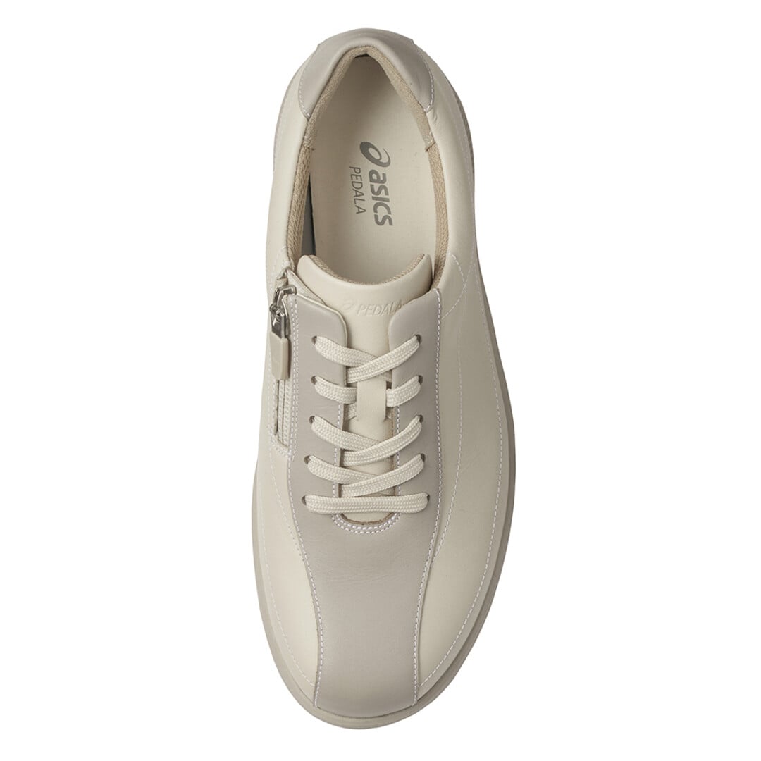素足のような軽さと、長時間の歩行でも足への負担が少ないクッション性のよさが特長の、PEDALAシリーズ。スポーティモデルのペダラスポーツがスタイリッシュにアップデート。ラストの見直しにより、履き心地も向上しています。アウターソールには耐摩耗性に優れたAHARラバーを採用。「グルーヴチェンジ」構造により、歩行時の安定性をサポートします。ミッドソールには反発性に優れたSPEVAを採用し、かかと部に衝撃緩衝機能GELを搭載。インナーソールはクッション性に優れたハーフカップタイプで、前足部のメッシュ材は抗菌素材のシャインアップ。アッパーははっ水効果のあるやわらかい天然皮革(牛革)。足がすっきりと見える流れモカデザインを採用しています。内側にファスナーを配置し、脱ぎ履きも簡単。カジュアルなロングスカートやパンツスタイルにもなじむデザインで、デイリーユースやトラベルなど、さまざまな「歩く」シーンで活用できるアイテムです。4Eオブリークラストモデルです。●素材本体=天然皮革(牛革) アウターソール=ゴム底