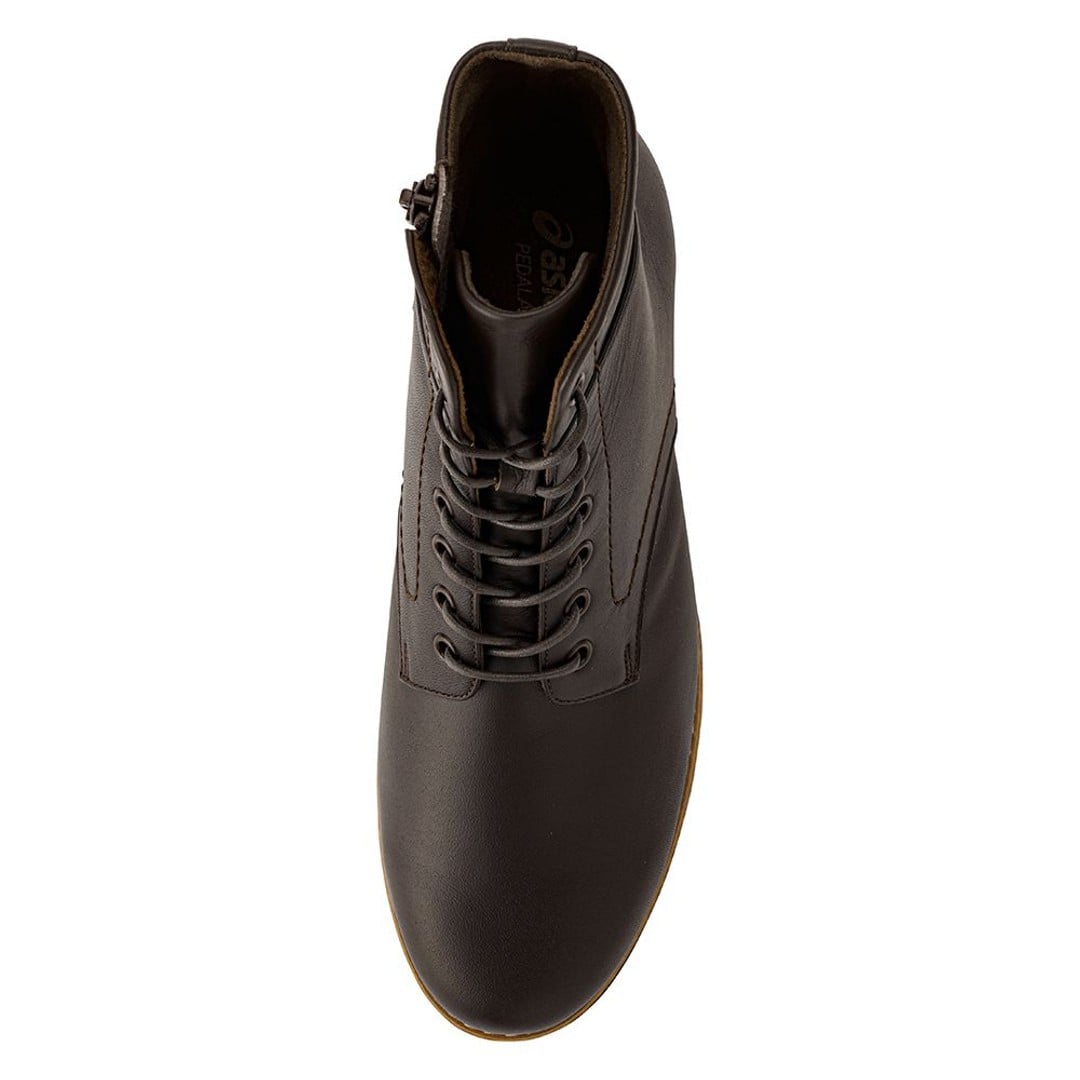 素足のような軽さと、長時間の歩行でも足への負担が少ないクッション性のよさが特長の、PEDALAシリーズ。マニッシュでありつつ女性らしさを兼ね備えた、ラギッドデザインのブーツです。アウターソールにはパワーフォーミングソールを採用し、ボリューム感をもたせながら軽さややわらかさ、屈曲性を追求。ミッドソールのかかと部に衝撃緩衝機能GELを搭載し、しています。ライニングに抗菌素材(つま先部分は抗菌・消臭素材)、インナーソールには抗菌素材を使用。ひもが締めやすく、履いたときのシルエットも美しいハトメ仕様。アシックス独自のドロップアイレットデザインにより、履き口のテンションを軽減しています。トップラインとベロはソフトレザーでやわらかな足当たり。内側のファスナーにより、脱ぎ履きも簡単です。3Eラウンドラストモデルです。●素材本体=天然皮革(牛革) アウターソール=ゴム底
