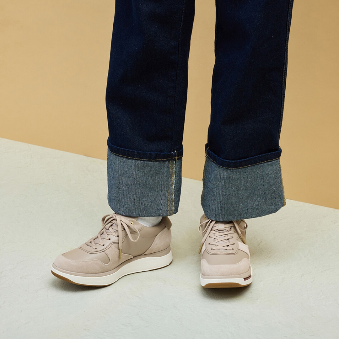 素足のような軽さと、足をやさしく包み込むやわらかさが特長のPEDALAシリーズ。・デザイン: アッパーは上品な質感の天然皮革(牛革)、ハトメ飾りのディテールが女性らしさを演出。さまざまなコーディネートに合わせやすいデザインです。・歩行効率: つま先部分をカーブ形状にし、歩行時に足首の屈曲を減らし、足首関節のエネルギー消費を抑えています。・安定性:ソールのガイダンスラインが重心移動を安定させ、スムーズな歩行をサポートします。・クッション性: ミッドソールには、やわらかでクッション性に優れたFF BLAST PLUSと反発性を併せもつSPEVAを採用し、かかと部に衝撃緩衝機能GELを内蔵。・快適性: 抗菌・消臭素材をライニングとインナーソールに使用。シュータンはメッシュ素材で通気性に配慮しています。・耐久性: アウターソールには耐摩耗性に優れたAHARラバーを採用しています。●素材本体=天然皮革 アウターソール=ゴム底