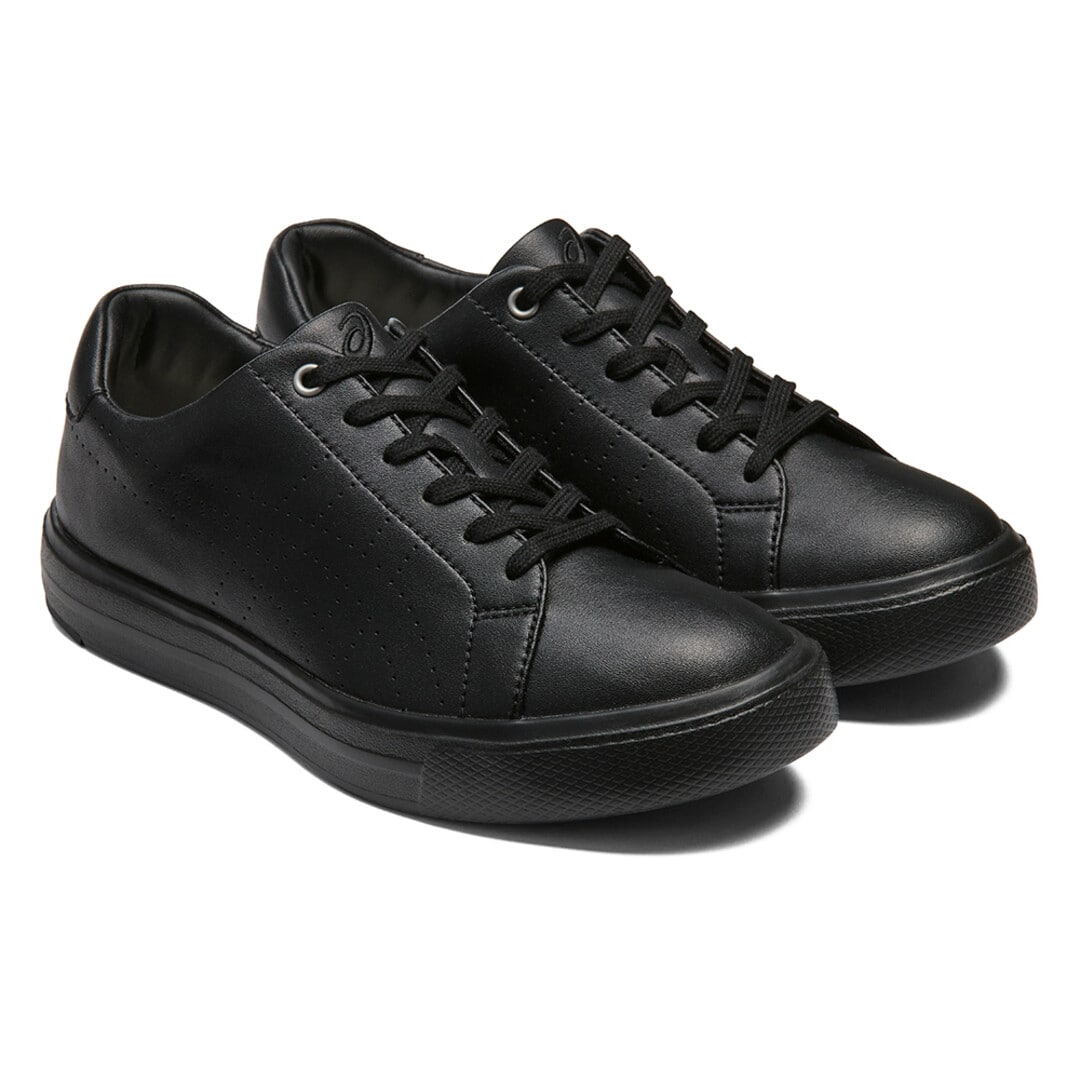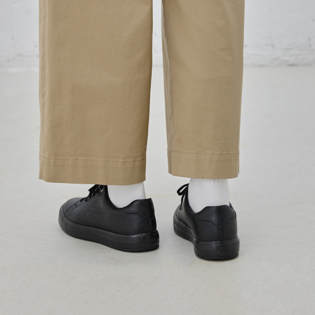 さまざまなスタイルにマッチする、クラシカルなフォルムの軽量なコートタイプのスニーカー。アウターソールは、ボリューム感がありながらも軽量性を追求した半球状の連続意匠。かかと部に内蔵したカラフルなfuzeGELをソールの裏側から見せることで、デザインのアクセントにしています。ハーフカップ中敷でフィット感とクッション性を向上。前足部を袋状に縫製するボロネーゼ製法により、足を包み込むような履き心地です。パンチングでアシックスストライプを表現したシンプルなデザインで、ニュアンスカラーを取り入れたカラーバリエーション。替えひも付きで、コーディネートに合わせて楽しめるのも魅力です。ユニセックスモデルです。■キーワードスニーカー、ローカット、ウォーキングシューズ、ビジネスシューズ、カジュアル●素材本体=人工皮革 アウターソール=合成底・ゴム底