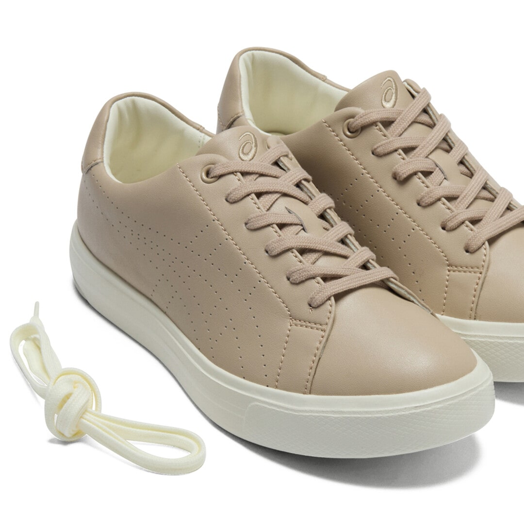 さまざまなスタイルにマッチする、クラシカルなフォルムの軽量なコートタイプのスニーカー。アウターソールは、ボリューム感がありながらも軽量性を追求した半球状の連続意匠。かかと部に内蔵したカラフルなfuzeGELをソールの裏側から見せることで、デザインのアクセントにしています。ハーフカップ中敷でフィット感とクッション性を向上。前足部を袋状に縫製するボロネーゼ製法により、足を包み込むような履き心地です。パンチングでアシックスストライプを表現したシンプルなデザインで、ニュアンスカラーを取り入れたカラーバリエーション。替えひも付きで、コーディネートに合わせて楽しめるのも魅力です。ユニセックスモデルです。■キーワードスニーカー、ローカット、ウォーキングシューズ、ビジネスシューズ、カジュアル●素材本体=人工皮革 アウターソール=合成底・ゴム底