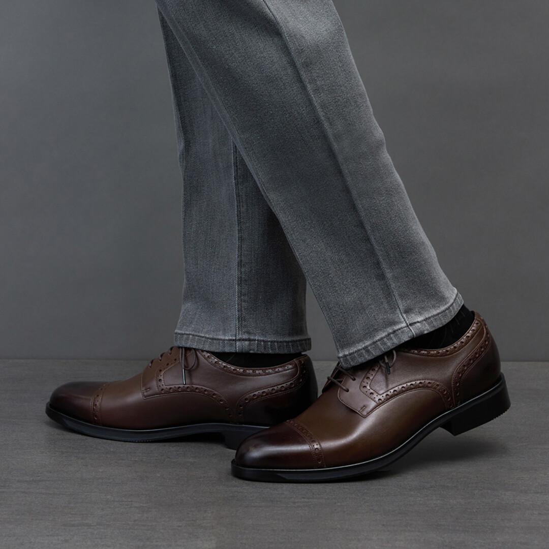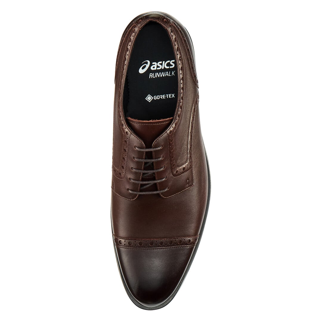 つま先に一直線のラインが入った内羽根ストレートチップ、セミスクエアシルエットのドレスシューズ。防水透湿性に優れるゴアテックスファブリクスをライニングに使用しています。アッパーにはイタリア産のきめの細かい上質なスムースレザーを採用。シャドースプレーのツヤを強調し、高級感を演出しています。インナーソールは足なじみのよいオーソライト中敷。ミッドソールにはクッション性と反発性を併せもつSPEVA、かかと部にfuzeGELを搭載し、快適な歩行をサポートします。中足部はTPUシャンクにより、歩行の安定性に配慮。アウターソールの擦り減りやすい部分には、耐摩耗性に優れたAHARラバーを採用しています。※RUNWALK 7 TSはRUNWALK 7 TRAD DRESS SHOESの略称です。●素材本体=天然皮革 アウターソール=ゴム底