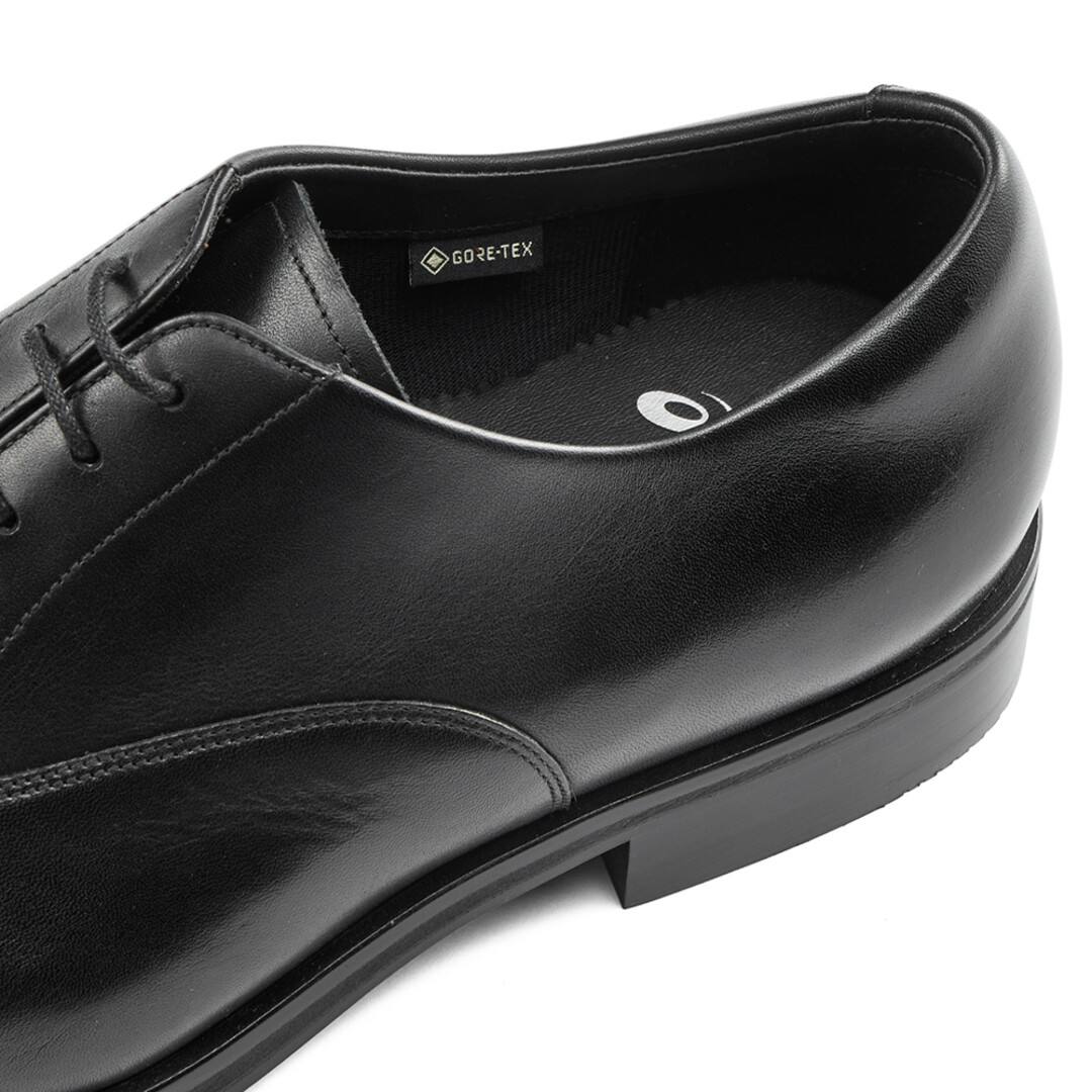 つま先に一直線のラインが入った内羽根ストレートチップ、セミスクエアシルエットのドレスシューズ。防水透湿性に優れるゴアテックスファブリクスをライニングに使用しています。アッパーにはイタリア産のきめの細かい上質なスムースレザーを採用。シャドースプレーのツヤを強調し、高級感を演出しています。インナーソールは足なじみのよいオーソライト中敷。ミッドソールにはクッション性と反発性を併せもつSPEVA、かかと部にfuzeGELを搭載し、快適な歩行をサポートします。中足部はTPUシャンクにより、歩行の安定性に配慮。アウターソールの擦り減りやすい部分には、耐摩耗性に優れたAHARラバーを採用しています。※RUNWALK 7 TSはRUNWALK 7 TRAD DRESS SHOESの略称です。●素材本体=天然皮革 アウターソール=ゴム底