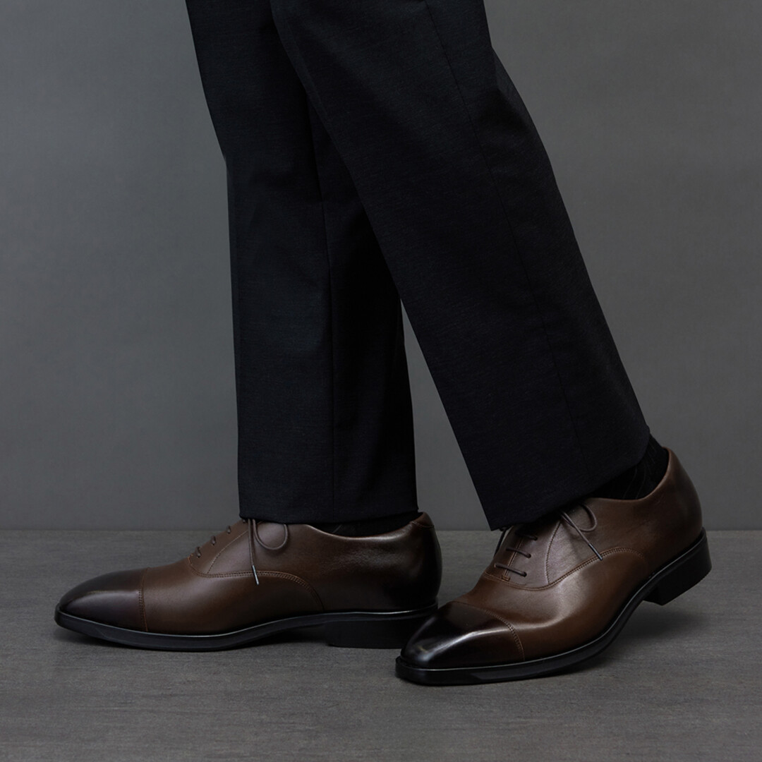 つま先に一直線のラインが入った内羽根ストレートチップ、セミスクエアシルエットのドレスシューズ。防水透湿性に優れるゴアテックスファブリクスをライニングに使用しています。アッパーにはイタリア産のきめの細かい上質なスムースレザーを採用。シャドースプレーのツヤを強調し、高級感を演出しています。インナーソールは足なじみのよいオーソライト中敷。ミッドソールにはクッション性と反発性を併せもつSPEVA、かかと部にfuzeGELを搭載し、快適な歩行をサポートします。中足部はTPUシャンクにより、歩行の安定性に配慮。アウターソールの擦り減りやすい部分には、耐摩耗性に優れたAHARラバーを採用しています。※RUNWALK 7 TSはRUNWALK 7 TRAD DRESS SHOESの略称です。●素材本体=天然皮革 アウターソール=ゴム底
