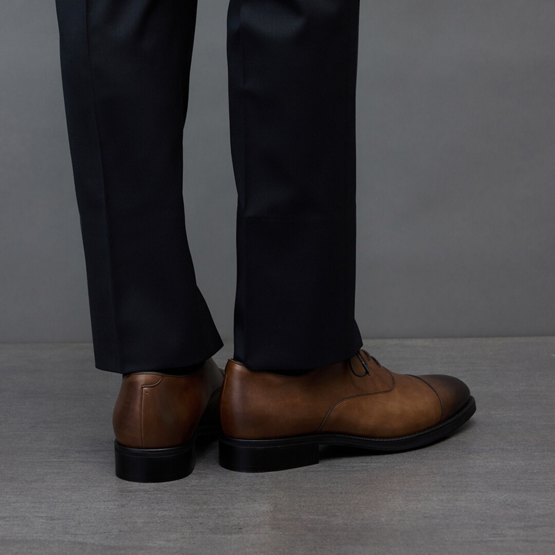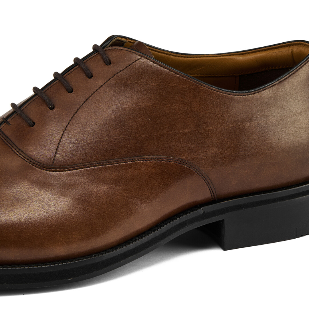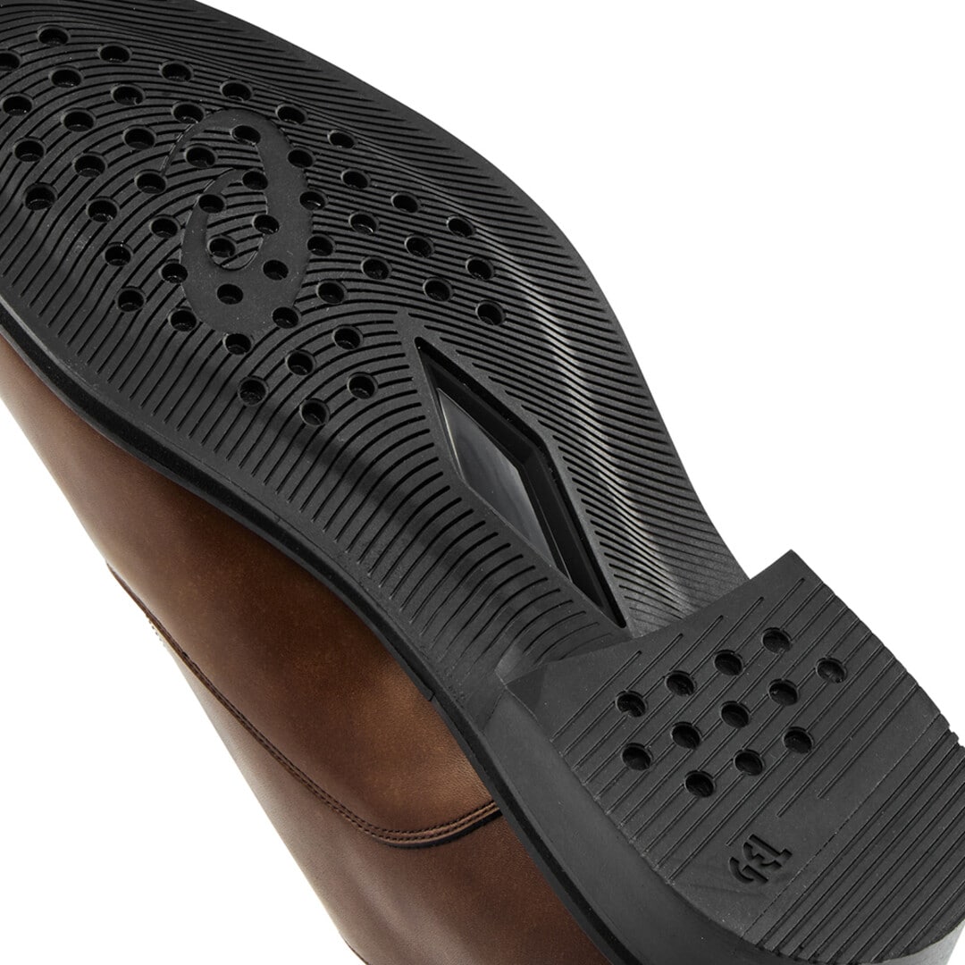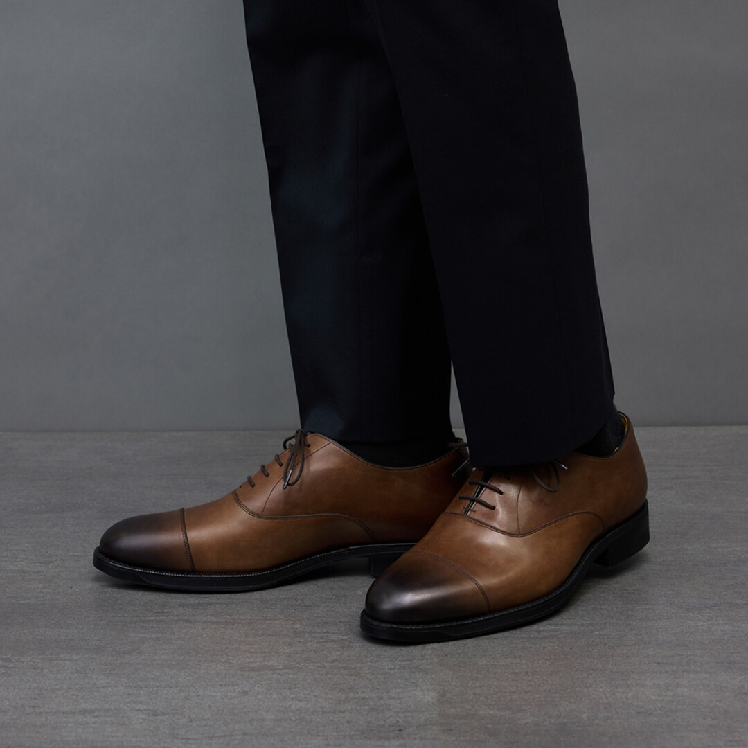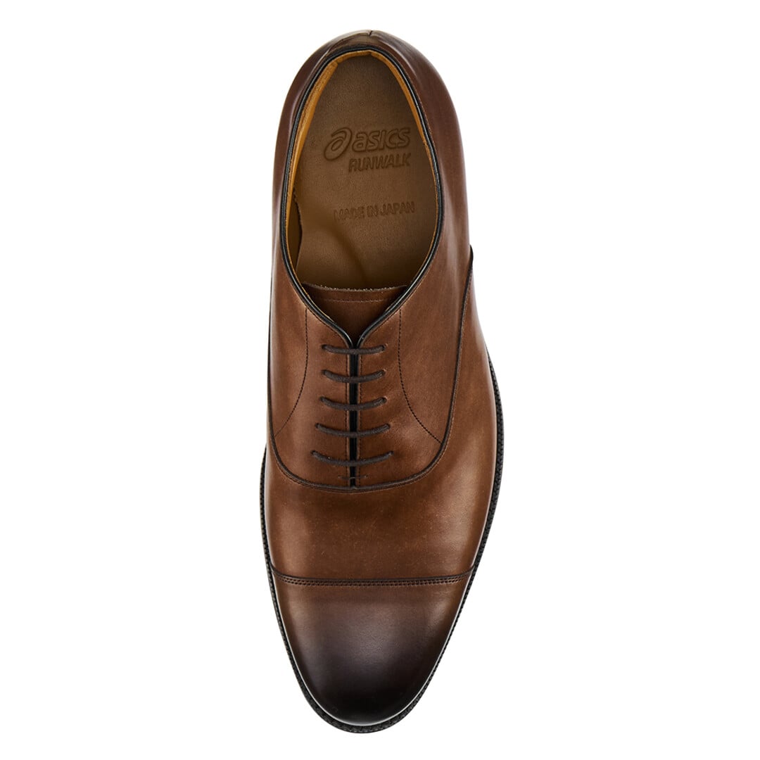 つま先に一直線のラインが入った内羽根ストレートチップ、ラウンドシルエットのドレスシューズ。アッパーにはフランス産の上質な原皮を使用したキップレザーを採用。シャドースプレーのツヤを強調し、木型の陰影がきれいに出る仕上げを施しています。ライニングにも牛革を使用。インナーソールは足なじみのよいオーソライト中敷。ミッドソールにはクッション性と反発性を併せもつSPEVA、かかと部にfuzeGELを搭載し、快適な歩行をサポートします。中足部はTPUシャンクにより、歩行の安定性に配慮。アウターソールの擦り減りやすい部分には、耐摩耗性に優れたAHARラバーを採用しています。※RUNWALK 7 LSはRUNWALK 7 LUXURY DRESS SHOESの略称です。●素材本体=天然皮革/人工皮革 アウターソール=ゴム底
