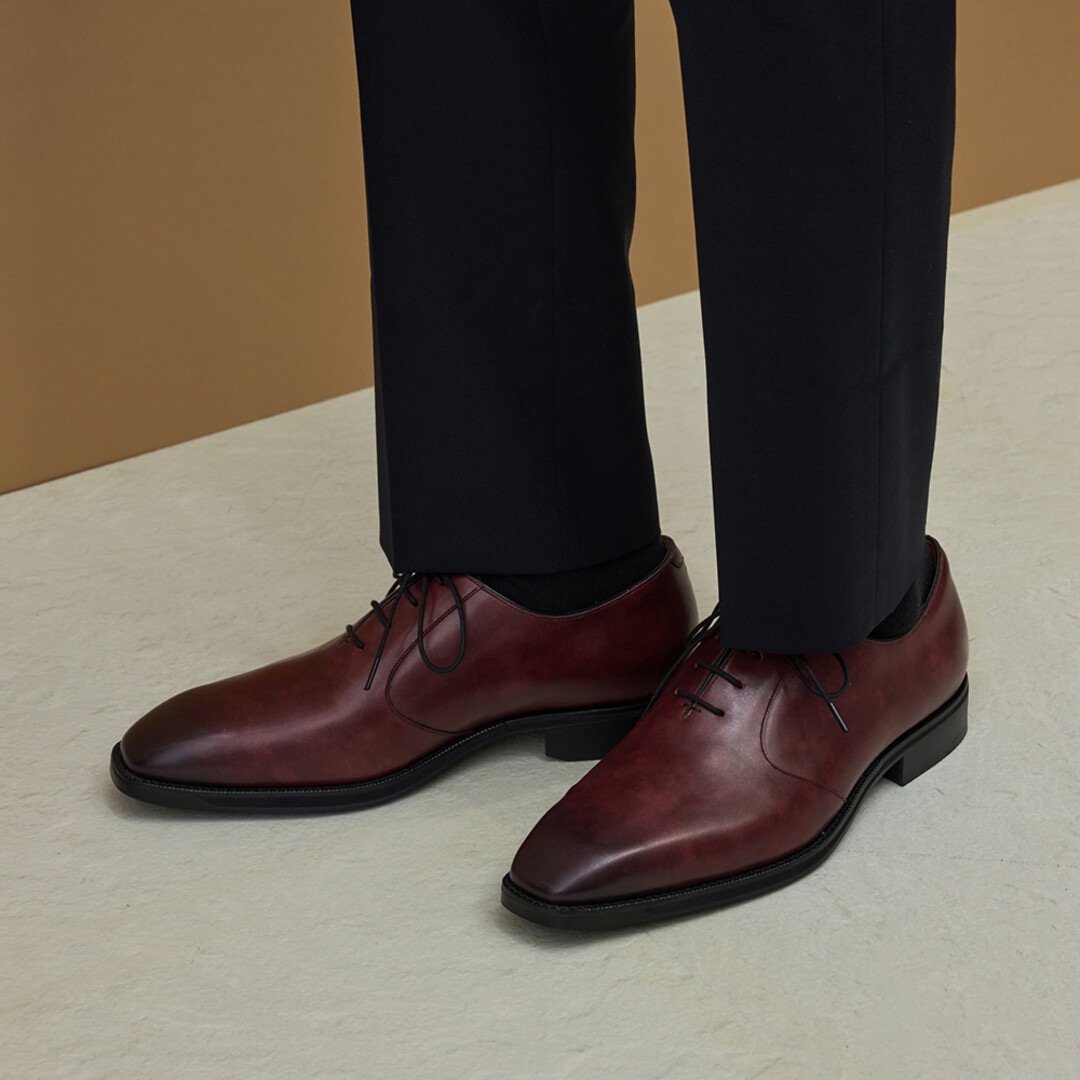 前足部が1枚の革で形成されたホールカットデザインで、つま先がのびやかなスクエアシルエットのドレスシューズ。アッパーにはフランス産の上質な原皮を使用したキップレザーを採用。シャドースプレーのツヤを強調し、木型の陰影がきれいに出る仕上げを施しています。ライニングにも牛革を使用しています。インナーソールは足なじみのよいオーソライト中敷。ミッドソールにはクッション性と反発性を併せもつSPEVA、かかと部にfuzeGELを搭載し、快適な歩行をサポートします。中足部はTPUシャンクにより、歩行の安定性に配慮。アウターソールの擦り減りやすい部分には、耐摩耗性に優れたAHARラバーを採用しています。※RUNWALK 7 LSはRUNWALK 7 LUXURY DRESS SHOESの略称です。●素材本体=天然皮革/人工皮革 アウターソール=ゴム底