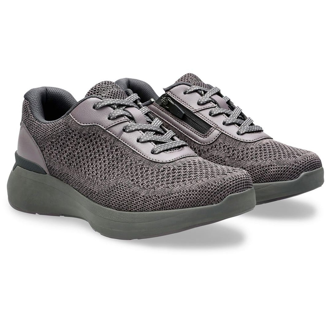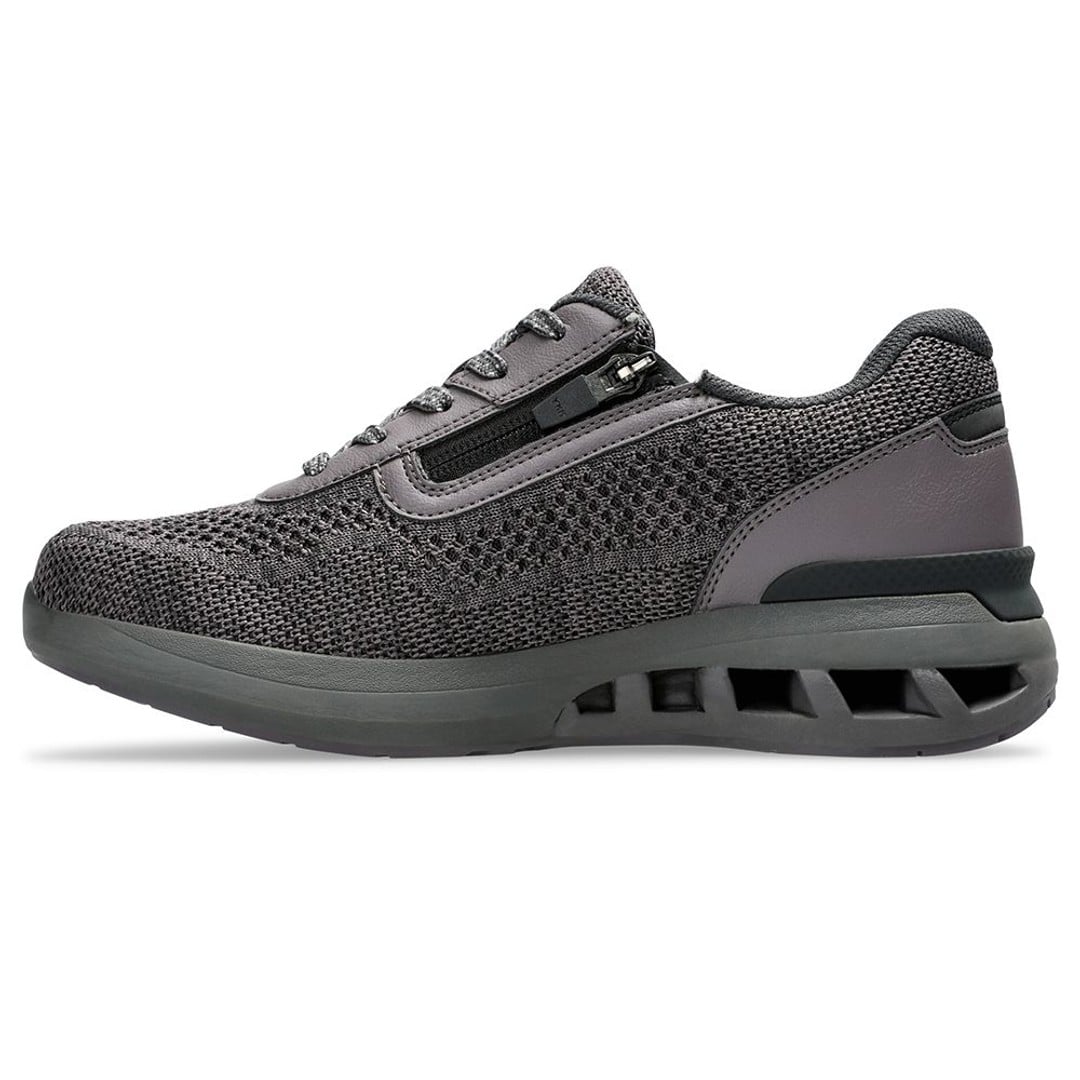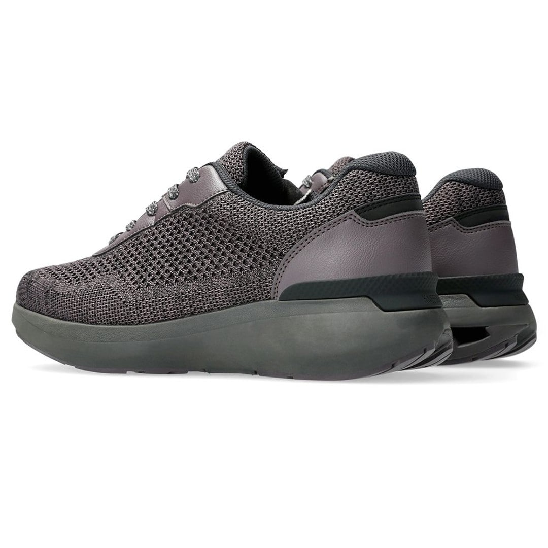 「あなたのひざを快適に」をコンセプトに、O脚などひざ関節の内反に伴う、ひざへの負担を軽減するウォーキングシューズ・KNEESUP(ニーズアップ)。タウンユースやトラベルに活用したい、カジュアルモデルです。産・学・医で共同開発のクッション機能「MCCS」を搭載。靴底内側に配置したクッションが、かかと荷重時にたわむことで外側から内側に傾斜。ひざ関節を内側へ誘導することで、ひざへの負担を軽減しています。足なじみのよいポリウレタン素材を採用したミッドソールはスムーズな歩行をサポートする舟底設計を採用。かかと部には衝撃緩衝機能GELを搭載しています。インナーソールは、立体形状で高いフィット感を追求。かかと部のカウンター(かかと芯)は、外側着地によるかかとの内倒れを抑えるため、内側を長く設計。アッパーにはフィット感のよいニット素材を採用。内側にファスナーを配置し、脱ぎ履きも簡単です。シームレスな仕様で足当たりのよさに配慮しています。かかと部には反射材を採用し、夜間の視認性に配慮。シンプルなデザインで、ロングスカートなどフェミニンなスタイルにもなじむアイテムです。ゆったりした履き心地の5Eウィズ相当です。【ご購入前に必ずご確認ください】ご使用前に必ず下記項目をチェックしてください。項目がすべて『YES』の方のみご使用ください。□ご年齢は、20歳以上である。□脚の形が、O脚または、ストレート脚である。□足首の関節に異常がない。(頻繁に足首を捻挫するなど)・ストレート脚…使用可能・O脚…使用可能・X脚…使用不可【ご留意事項】□本製品は、医療器具ではありません。□現在、医師の治療をお受けの方、及び、持病のある方などは、本製品のご使用に関して、医師にご相談ください。□万が一、痛みや違和感を感じた場合は速やかにご使用を中止してください。□本製品は、靴底内側に空洞を設けた構造を採用しています。 この空洞部分に土や石などの異物が詰まる場合があるため、必ず異物を取り除いてご使用ください。■キーワードスニーカー、ローカット、ウォーキングシューズ、カジュアル●素材本体=人工皮革・ポリエステル アウターソール=ゴム底・合成底