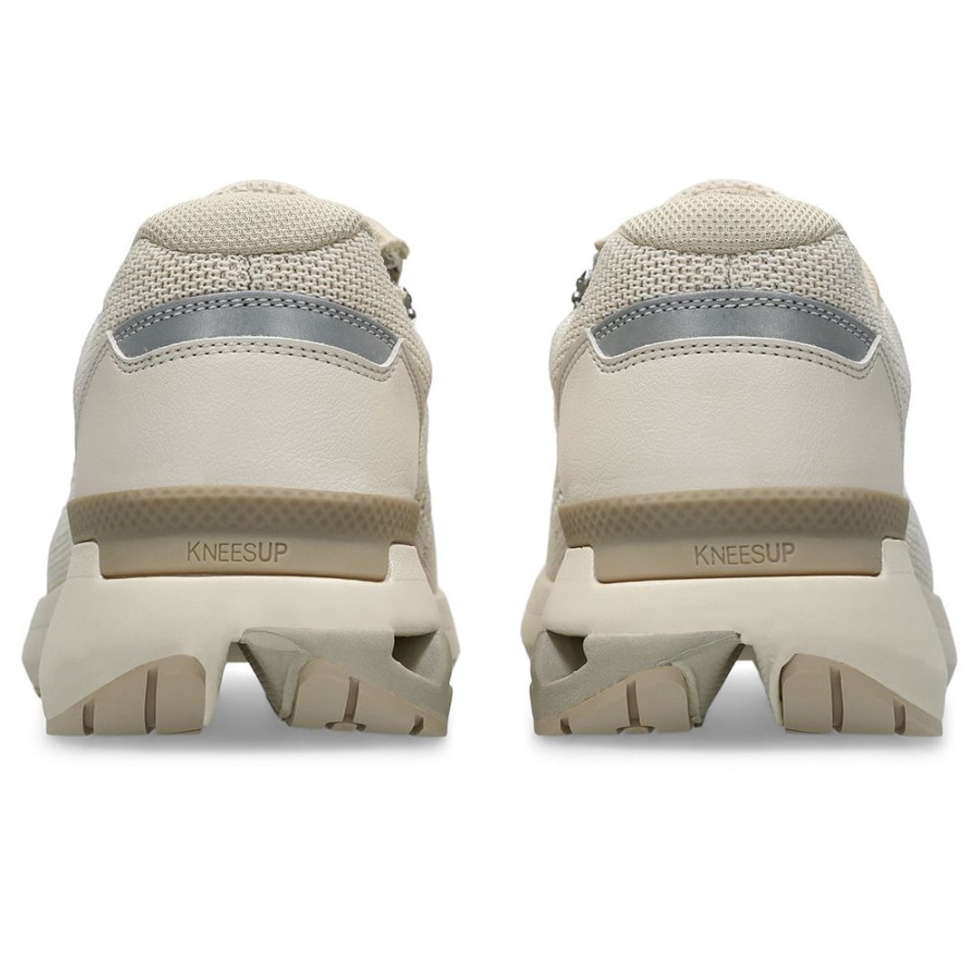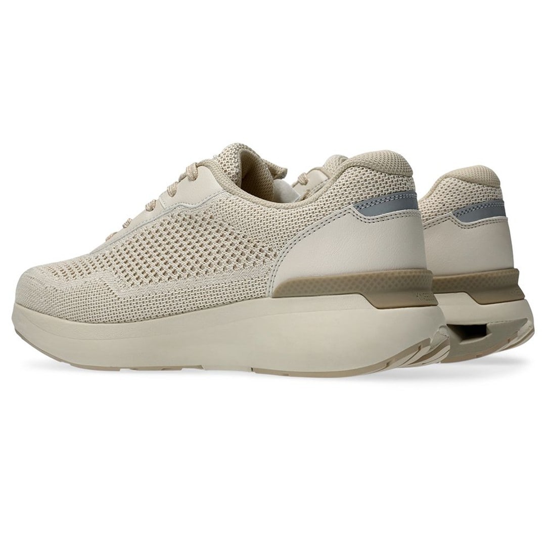 「あなたのひざを快適に」をコンセプトに、O脚などひざ関節の内反に伴う、ひざへの負担を軽減するウォーキングシューズ・KNEESUP(ニーズアップ)。タウンユースやトラベルに活用したい、カジュアルモデルです。産・学・医で共同開発のクッション機能「MCCS」を搭載。靴底内側に配置したクッションが、かかと荷重時にたわむことで外側から内側に傾斜。ひざ関節を内側へ誘導することで、ひざへの負担を軽減しています。ミッドソールはスムーズな歩行をサポートする舟底設計を採用。かかと部には衝撃緩衝機能GELを搭載しています。足なじみのよいポリウレタン素材を採用したインナーソールは、立体形状で高いフィット感を追求。かかと部のカウンター(かかと芯)は、外側着地によるかかとの内倒れを抑えるため、内側を長く設計。アッパーにはフィット感のよいニット素材を採用。内側にファスナーを配置し、脱ぎ履きも簡単です。シームレスな仕様で足当たりのよさに配慮しています。アッパー主材料の基布層にリサイクルポリエステルを使用し、環境に配慮しています。かかと部には反射材を採用し、夜間の視認性に配慮。シンプルなデザインで、ロングスカートなどフェミニンなスタイルにもなじむアイテムです。ゆったりした履き心地の5Eウィズ相当です。【ご購入前に必ずご確認ください】ご使用前に必ず下記項目をチェックしてください。項目がすべて『YES』の方のみご使用ください。□ご年齢は、20歳以上である。□脚の形が、O脚または、ストレート脚である。□足首の関節に異常がない。(頻繁に足首を捻挫するなど)・ストレート脚…使用可能・O脚…使用可能・X脚…使用不可【ご留意事項】□本製品は、医療器具ではありません。□現在、医師の治療をお受けの方、及び、持病のある方などは、本製品のご使用に関して、医師にご相談ください。□万が一、痛みや違和感を感じた場合は速やかにご使用を中止してください。□本製品は、靴底内側に空洞を設けた構造を採用しています。 この空洞部分に土や石などの異物が詰まる場合があるため、必ず異物を取り除いてご使用ください。■キーワードスニーカー、ローカット、ウォーキングシューズ、カジュアル●素材本体=人工皮革・ポリエステル アウターソール=ゴム底・合成底