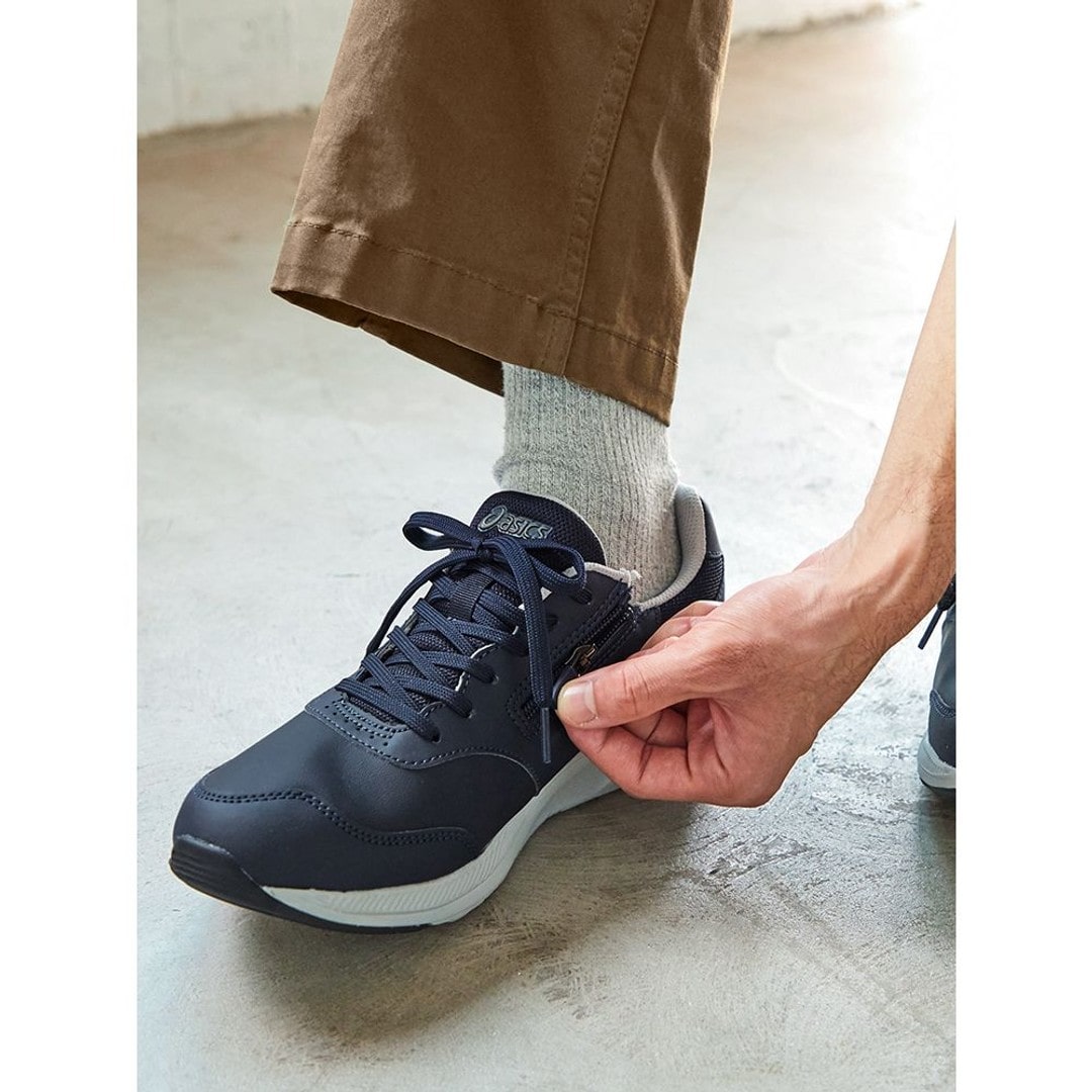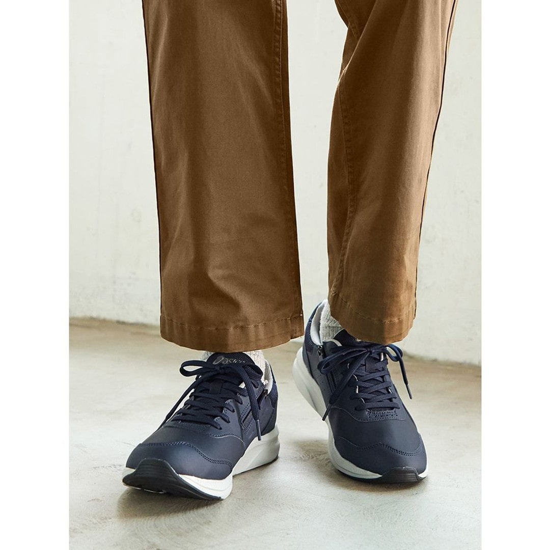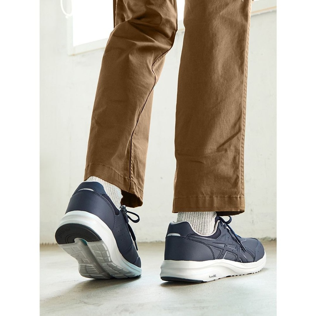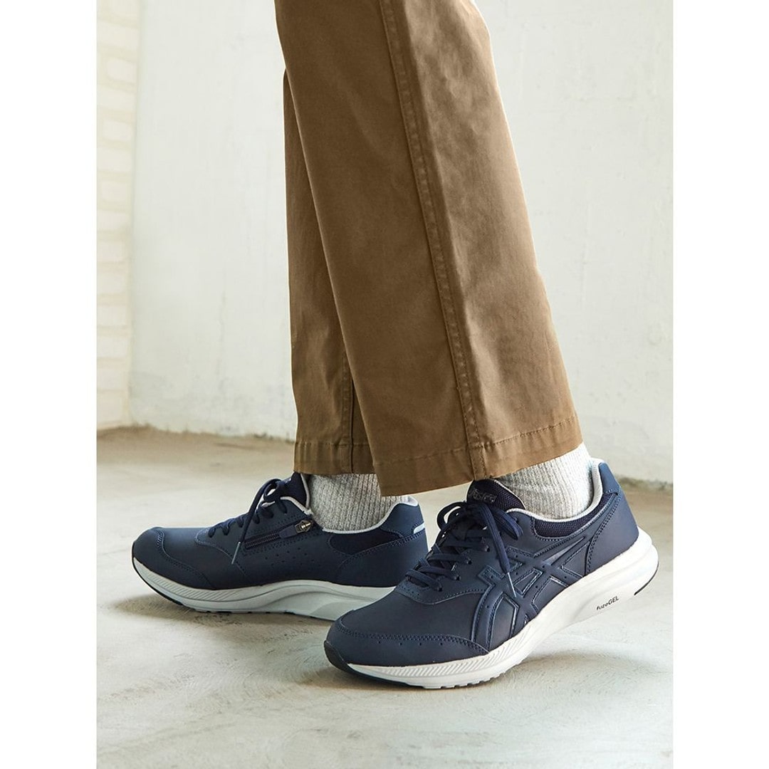 足への負担が少なく、やわらかな履き心地が特徴のウォーキングシューズ、ゲルファンウォーカーシリーズ。歩行時の安定性と軽量性が向上。ソールには「グルーヴチェンジ」構造を搭載。歩行時の左右のブレを抑え、安定性を高めます。ソールのかかと部には優れたクッション性と軽量性を兼ね備えたfuzeGELを搭載。アウターソールのかかと部は耐摩耗性に優れたAHARPLUSラバーにより、耐久性を高めています。ワイドな幅で足入れもゆったり。内側にファスナーが付き、脱ぎ履きも簡単です。アッパーの前足部にはやわらかく質感のよい人工皮革を採用し、足当たりのよさを追求しています。ウォーキングからタウンユースまで、シンプルで汎用性の高い1足です。■キーワードスニーカー、ローカット、ウォーキングシューズ●素材本体=人工皮革・ポリエステル アウターソール=ゴム底