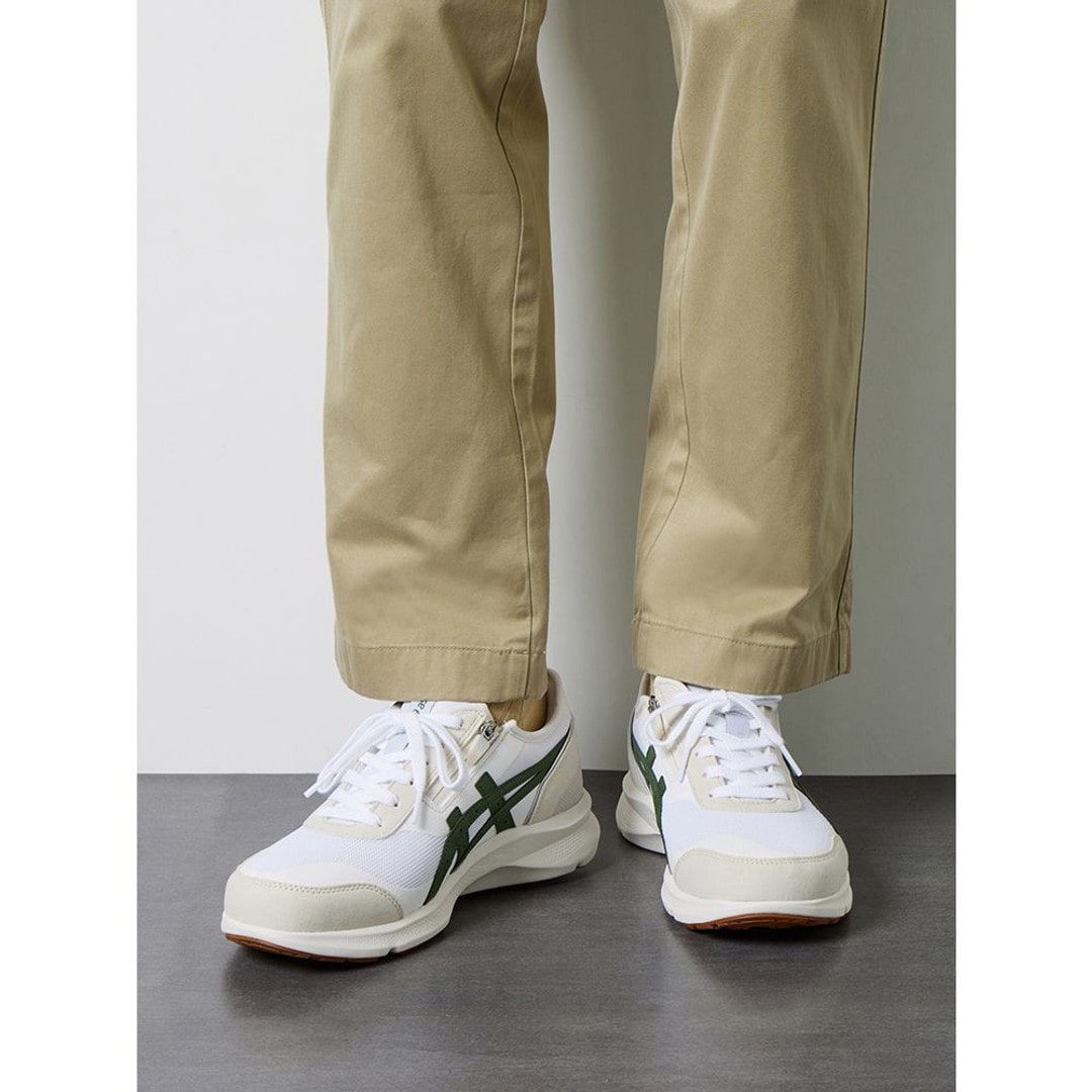 ハダシ感覚の履き心地を追求した、軽量でスポーティなウォーキングシューズのロングセラーシリーズ、HADASHIシリーズのニューモデル。足入れ感のよさや脱ぎ履きのしやすさはそのままに、クッション性とデザイン性、耐久性をアップデートしました。アッパーは通気性があり、やわらかなメッシュ素材です。内側にファスナーを配置し、脱ぎ履きも簡単。かかと部と前足部、中足部の溝が連動することで歩行時の左右のブレを抑え、安定性を高める「グルーヴチェンジ」構造のソールを搭載。ミッドソールにはクッション性の高い素材を採用。かかと部にはクッション性と軽さを兼ね備えたfuzeGELを搭載し、着地時の衝撃を緩和します。かかと部のミッドソールには反射素材を配置し、夜間の視認性に配慮。中底にクッション性のあるシートE.V.A.を採用することにより、快適な履き心地を追求しています。中敷つま先部の裏側に消臭繊維MOFFを配置。アシックスのアイコンであるアシックスストライプをあしらった、スポーティなデザインで、履き口をパイピング仕様にすることで、すっきりしたシルエットに仕上げています。■キーワードスニーカー、ローカット、ウォーキングシューズ●素材本体=人工皮革・ポリエステル・合成樹脂 アウターソール=ゴム底