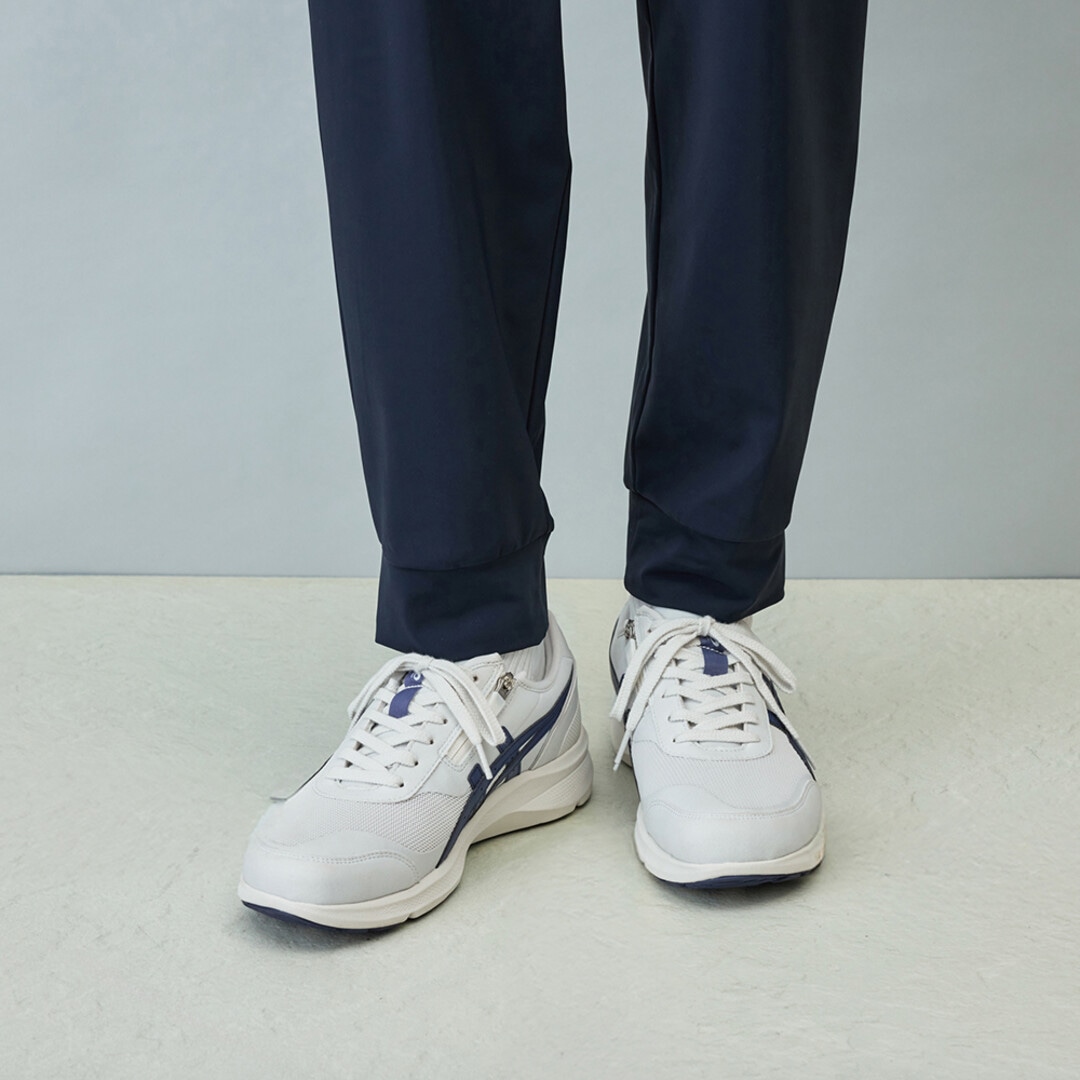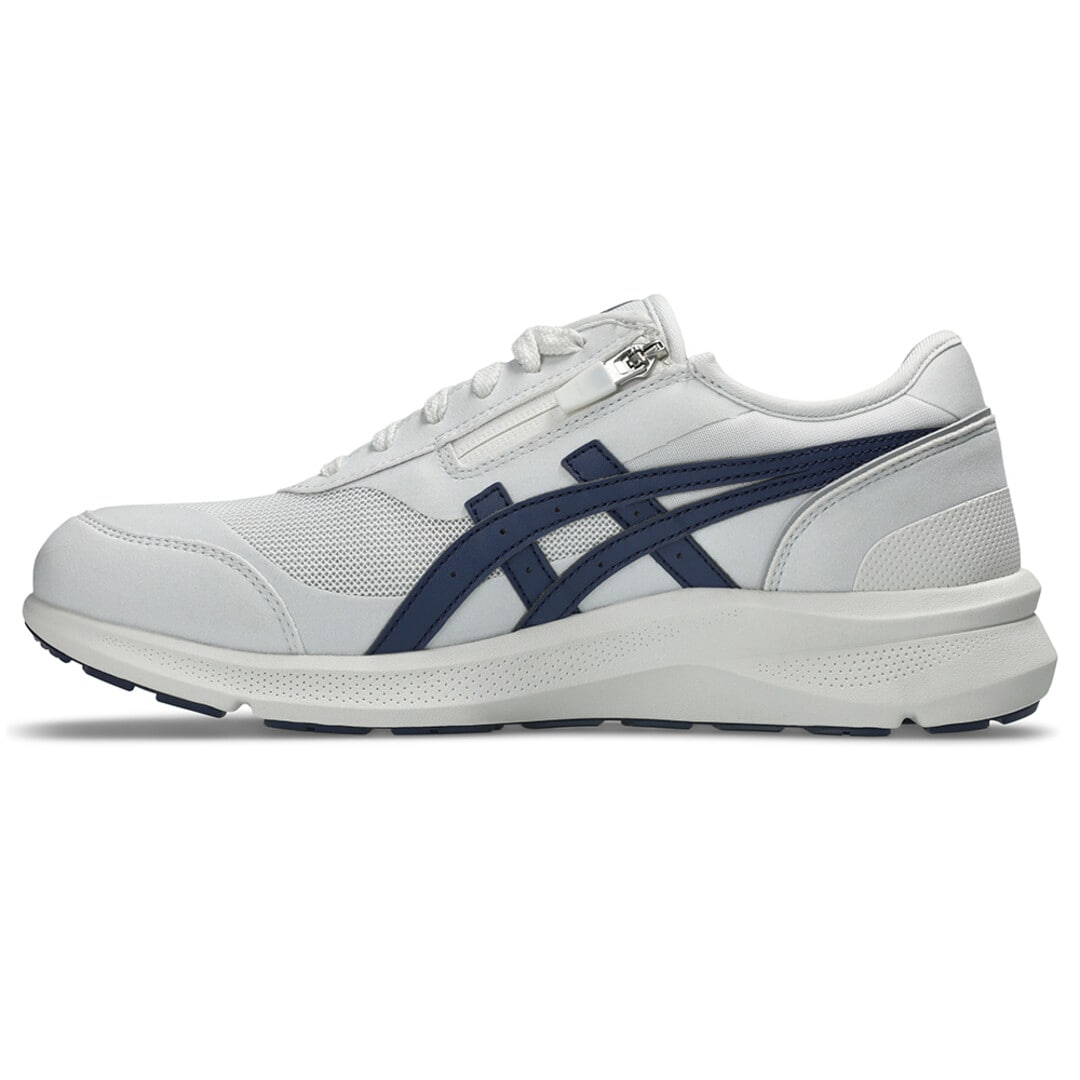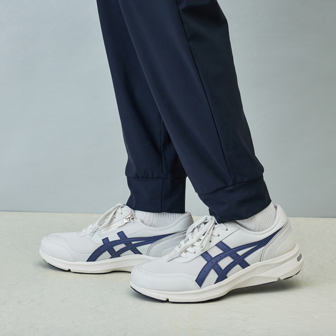 ハダシ感覚の履き心地を追求した、軽量でスポーティなウォーキングシューズのロングセラーシリーズ、HADASHIシリーズのニューモデル。足入れ感のよさや脱ぎ履きのしやすさはそのままに、クッション性とデザイン性、耐久性をアップデートしました。アッパーは通気性があり、やわらかなメッシュ素材です。内側にファスナーを配置し、脱ぎ履きも簡単。かかと部と前足部、中足部の溝が連動することで歩行時の左右のブレを抑え、安定性を高める「グルーヴチェンジ」構造のソールを搭載。ミッドソールにはクッション性の高い素材を採用。かかと部にはクッション性と軽さを兼ね備えたfuzeGELを搭載し、着地時の衝撃を緩和します。かかと部のミッドソールには反射素材を配置し、夜間の視認性に配慮。中底にクッション性のあるシートE.V.A.を採用することにより、快適な履き心地を追求しています。中敷つま先部の裏側に消臭繊維MOFFを配置。アシックスのアイコンであるアシックスストライプをあしらった、スポーティなデザインで、履き口をパイピング仕様にすることで、すっきりしたシルエットに仕上げています。■キーワードスニーカー、ローカット、ウォーキングシューズ●素材本体=人工皮革・合成繊維(ポリエステル)・合成樹脂 アウターソール=ゴム底