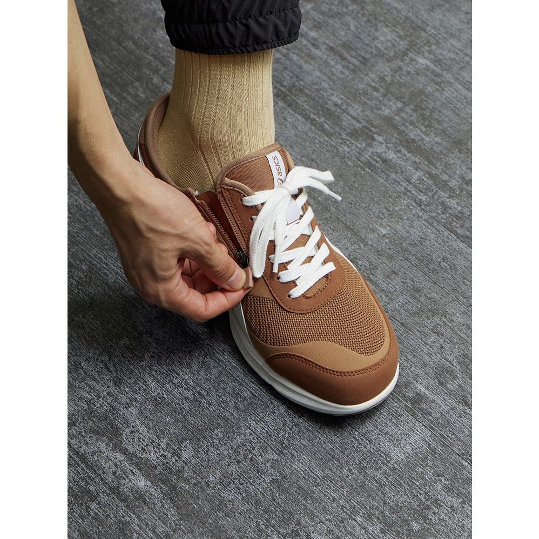 ハダシ感覚の履き心地を追求した、軽量でスポーティなウォーキングシューズのロングセラーシリーズ、HADASHIシリーズのニューモデル。足入れ感のよさや脱ぎ履きのしやすさはそのままに、クッション性とデザイン性、耐久性をアップデートしました。アッパーは通気性があり、やわらかなメッシュ素材です。内側にファスナーを配置し、脱ぎ履きも簡単。かかと部と前足部、中足部の溝が連動することで歩行時の左右のブレを抑え、安定性を高める「グルーヴチェンジ」構造のソールを搭載。ミッドソールにはクッション性の高い素材を採用。かかと部にはクッション性と軽さを兼ね備えたfuzeGELを搭載し、着地時の衝撃を緩和します。かかと部のミッドソールには反射素材を配置し、夜間の視認性に配慮。中底にクッション性のあるシートE.V.A.を採用することにより、快適な履き心地を追求しています。中敷つま先部の裏側に消臭繊維MOFFを配置。アシックスのアイコンであるアシックスストライプをあしらった、スポーティなデザインで、履き口をパイピング仕様にすることで、すっきりしたシルエットに仕上げています。■キーワードスニーカー、ローカット、ウォーキングシューズ●素材本体=人工皮革・ポリエステル・合成樹脂 アウターソール=ゴム底