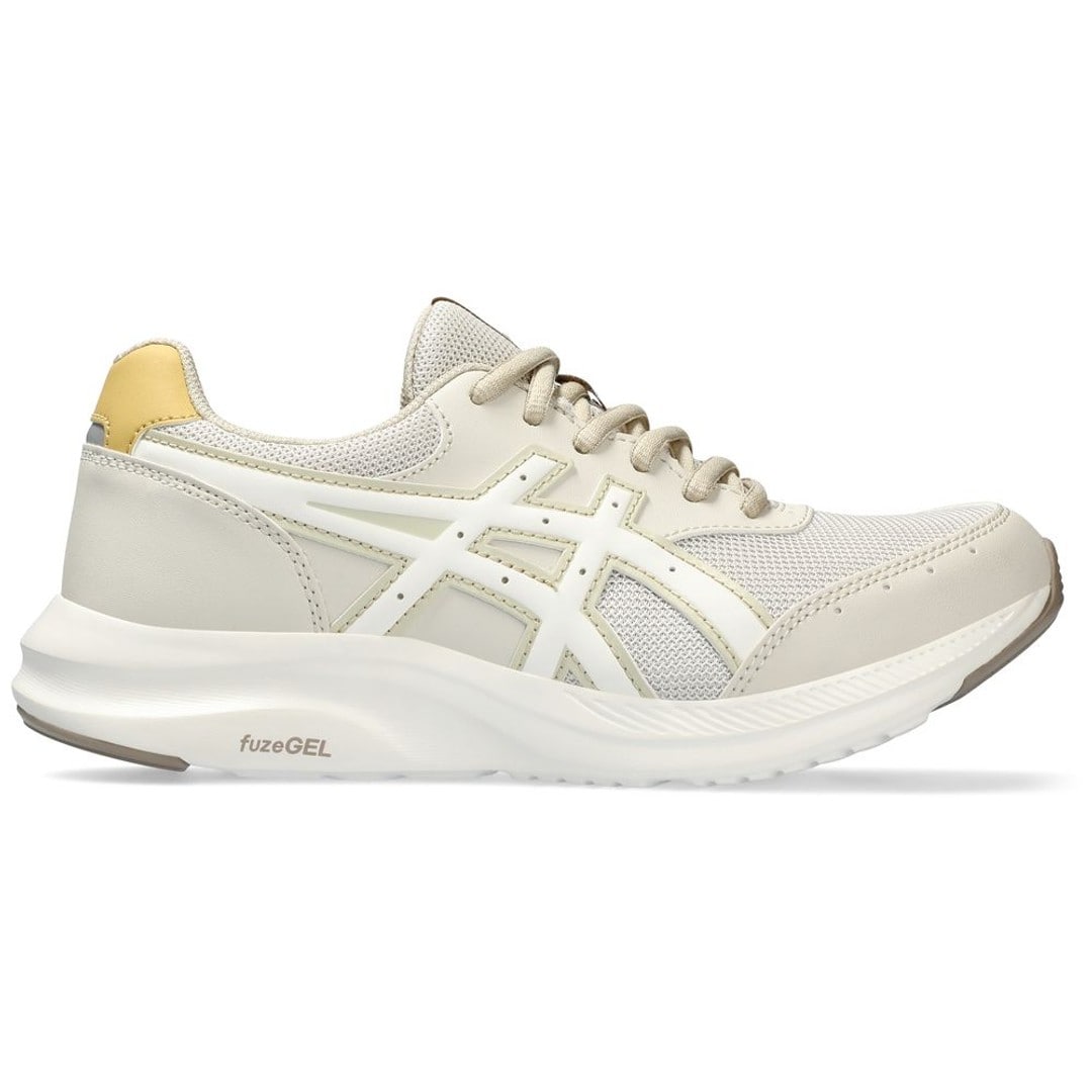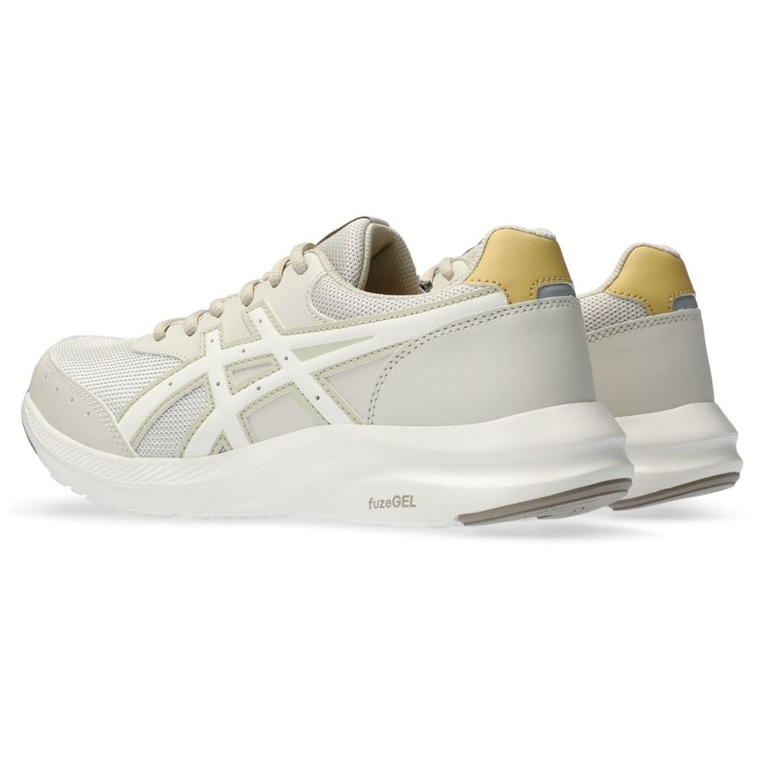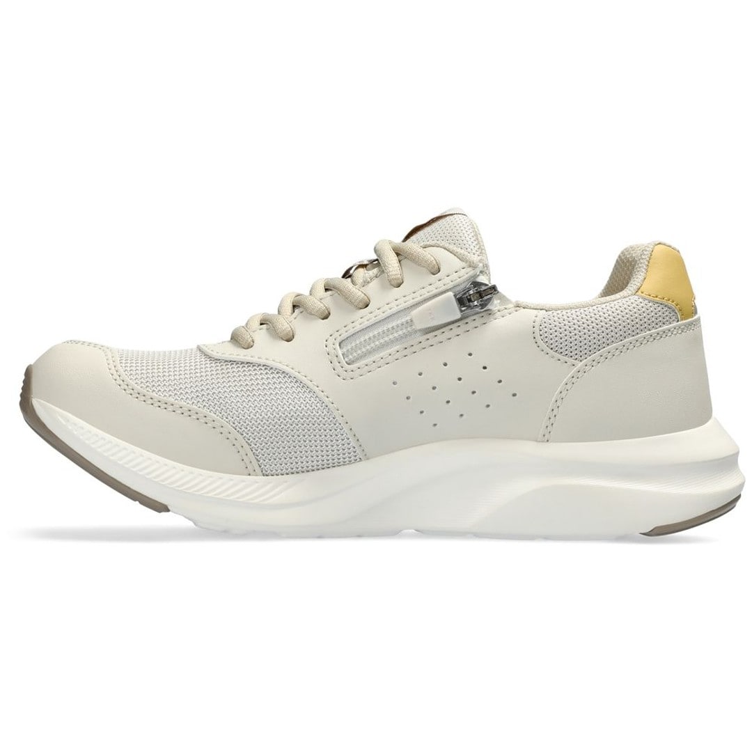 足への負担が少なく、やわらかな履き心地が特徴のウォーキングシューズ、ゲルファンウォーカーシリーズ。歩行時の安定性と軽量性が向上。ソールには「グルーヴチェンジ」構造を搭載。歩行時の左右のブレを抑え、安定性を高めます。ソールのかかと部には優れたクッション性と軽量性を兼ね備えたfuzeGELを搭載。アウターソールのかかと部は耐摩耗性に優れたAHARPLUSラバーにより、耐久性を高めています。ワイドな幅で足入れもゆったり。内側にファスナーが付き、脱ぎ履きも簡単です。アッパーの前足部には通気性に優れたラッセルメッシュを採用。ウォーキングからタウンユースまで、シンプルで汎用性の高い1足です。■キーワードスニーカー、ローカット、ウォーキングシューズ、カジュアル●素材本体=人工皮革・ポリエステル アウターソール=ゴム底