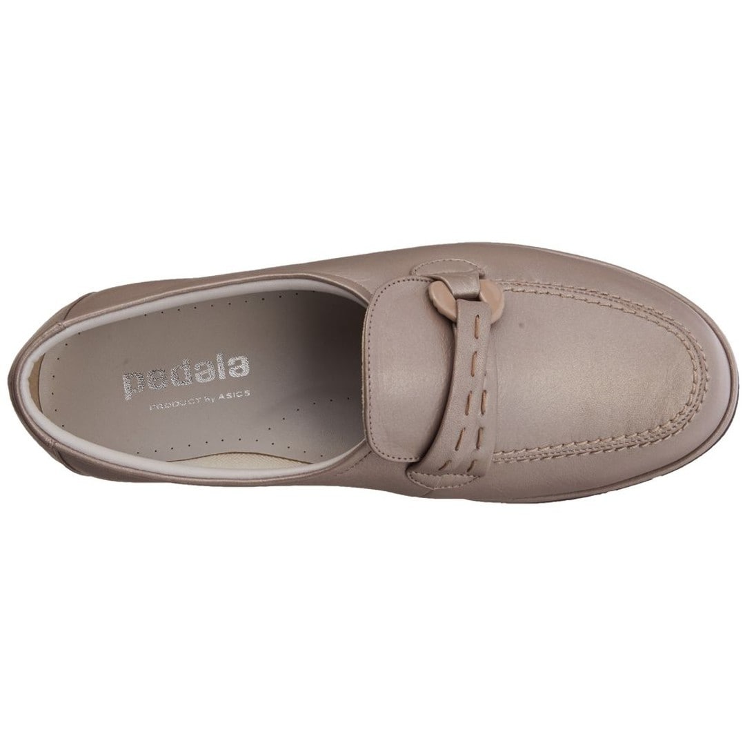 素足のような軽さと、足をやさしく包み込むやわらかさが特長のPEDALAシリーズ。ソフトな履き心地のシンプルなスリッポンです。軽くクッション性に優れたパワーフォーミングソールにより、やさしい履き心地を追求。足裏の荷重を分散する三点支持意匠により、歩行時の足の負担を軽減。ソールの前足部に屈曲溝を設けることで足が自然に曲がり、歩きやすくなっています。3Eラウンドラスト。天然皮革(牛革)のアッパーにははっ水加工を施し、多少の雨は弾きます。屈曲性がよく足沿いのよいカリフォルニアプラット製法を採用。足入れがしやすく、ソフトな履き心地の、PEDALAのロングセラーモデルです。●素材本体=天然皮革(牛革) アウターソール=ゴム底
