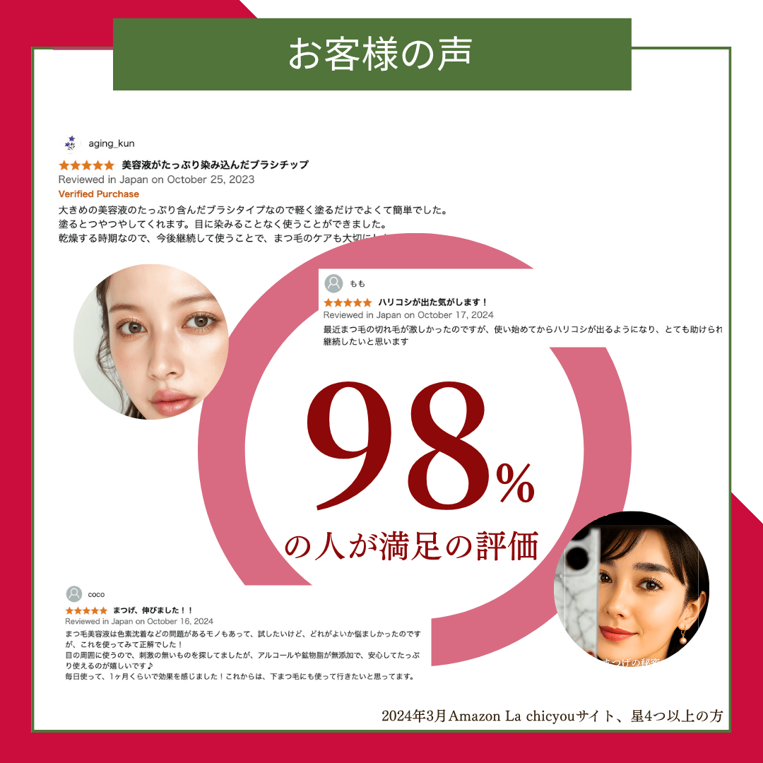 Amazon 「まつげ美容液・マスカラ下地部門」「アイメイク部門」ランキング1位(2025年8月時点) 育毛剤開発メーカーが医師・薬剤師・毛髪診断士と共同開発したまつ毛美容液。 美容雑誌やyoutubeでも大人気、女性へのプレゼントとしても話題性&喜ばれること間違いなし! 成分:美容業界で注目されている「ヒト幹細胞順化培養液エキス」配合。 まつ育成分+エイジングケア成分をたっぷり配合したまつ毛美容液はラシックユーだけ。 40代の女性からも、フサフサのお喜びの声多数。