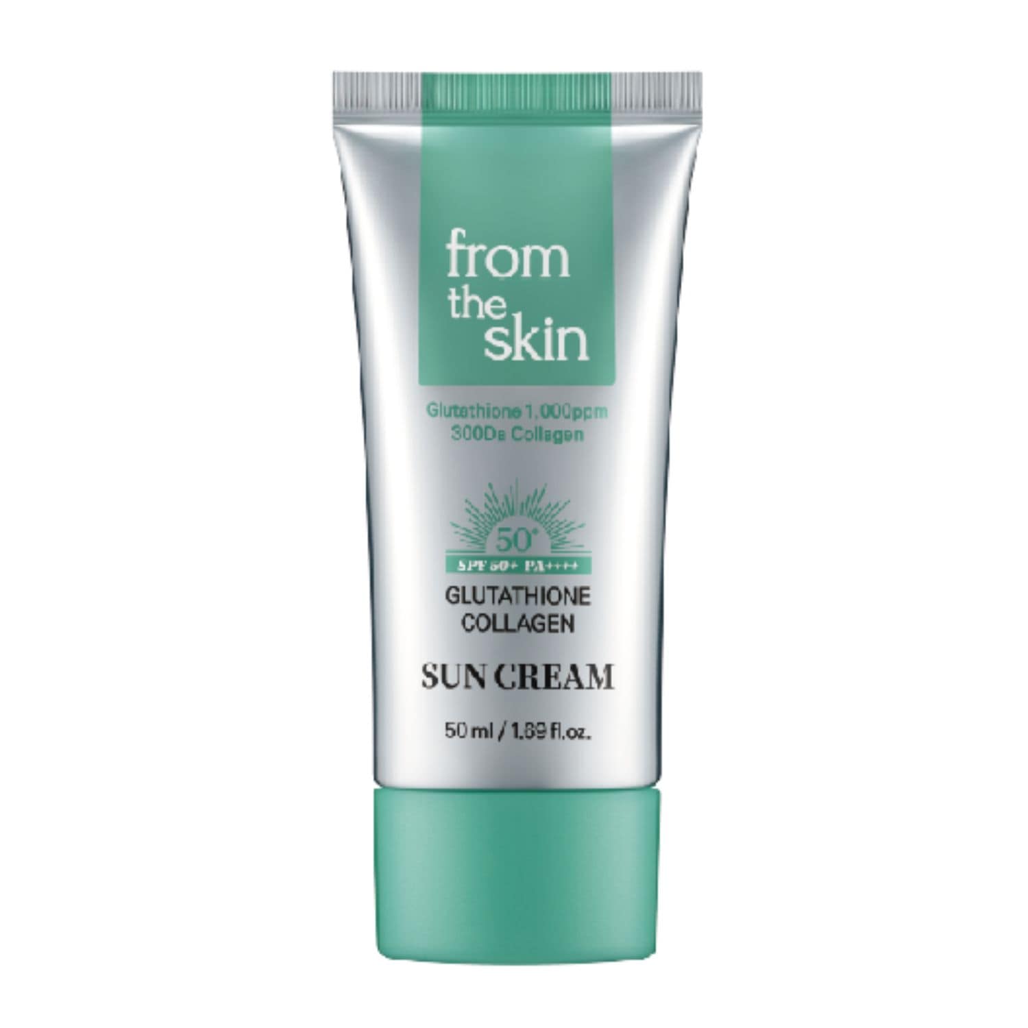 フロムザスキン グルタチオン コラーゲン サンクリーム 高濃度グルタチオンとコラーゲンを配合した、肌に優しい低刺激のサンクリーム。 SPF50+ / PA++++の国内最高基準で紫外線をブロックしながら、潤いとハリを与え、肌を明るくトーンアップ。敏感肌の方にも安心して使える多機能UVケアアイテムです。 特徴 強力なUVカット効果:SPF50+ / PA++++で日常の紫外線から肌を徹底保護。 低刺激処方:敏感肌でも安心して使用可能。 美容液成分配合:高濃度グルタチオン・コラーゲン・ナイアシンアミド・アデノシンで肌を整え、エイジングケアもサポート。 トーンアップ効果:自然に肌を明るく見せ、輝きのある印象へ。 ご使用方法 スキンケアの最後に適量を手に取り、顔全体にムラなく丁寧になじませます。 おすすめポイント 高濃度グルタチオンで抗酸化・保湿ケア コラーゲン配合で肌のハリ・弾力をサポート ナイアシンアミドとアデノシンでトーンアップ&エイジングケア 国内最高基準SPF50+ / PA++++で紫外線から肌を守る 低刺激処方で敏感肌でも安心して使用可能