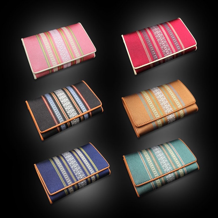 博多織を代表する柄である献上柄を織りこんだ名刺入れです。 献上柄には身を守る、厄除け、家内安全、無病息災、子孫繁栄の祈りが込められています。 そんな祈りが込められた献上柄の名刺入れは、大事な商談でも活躍すること間違いなしです。 【収納:カード入れx3、※一般的な名刺約60枚収納可能】