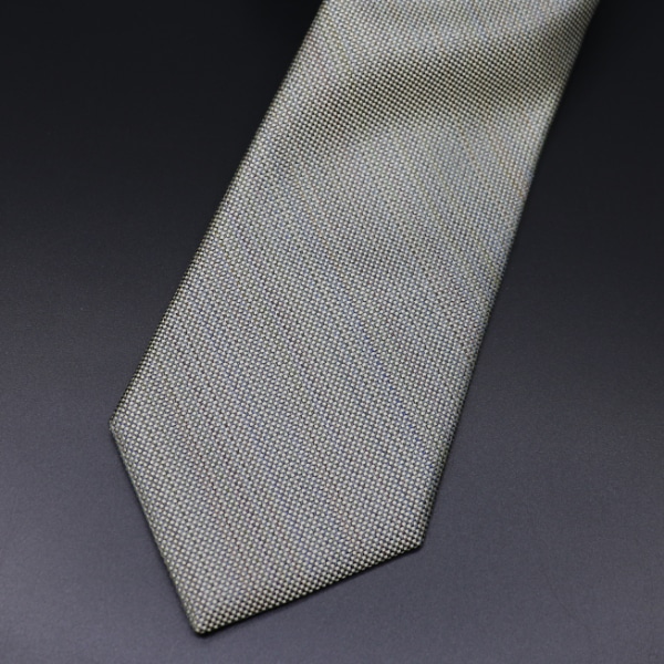 奄美大島にて泥染めの技法で染めた絹糸を中心に、17色の色を織り込んでおり、 光の角度によって玉虫色に輝く光沢と優れた耐光性、高い堅牢度を併せ持つ商品です。 様々なスーツにも合わせやすいネクタイです。