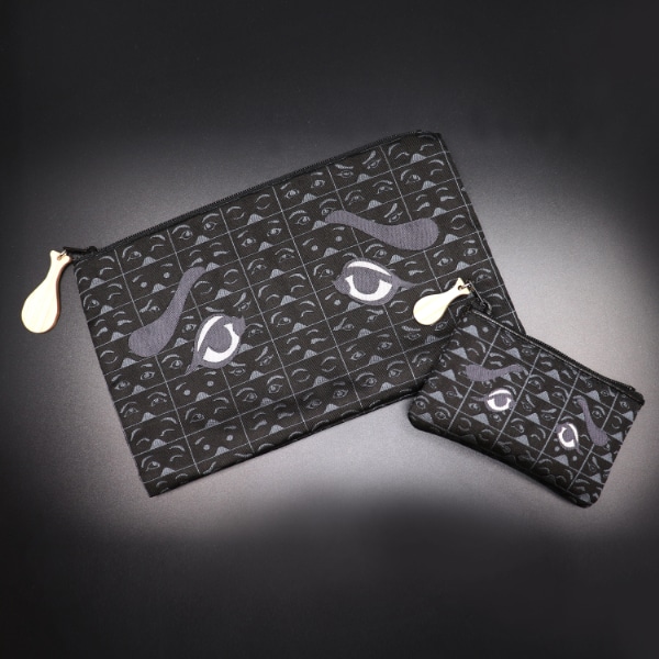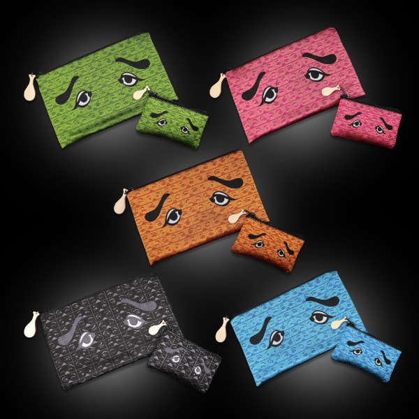福岡の人ならお馴染みのにわか面の様々な表情を地模様にあしらい、 ファスナースライダーには木製のしゃもじをチャームにするなどして、博多らしさをあらわしています。 柄のインパクトだけではなく、絹織物独特の光沢と織りの立体感は博多織らしさと技術ならではです。