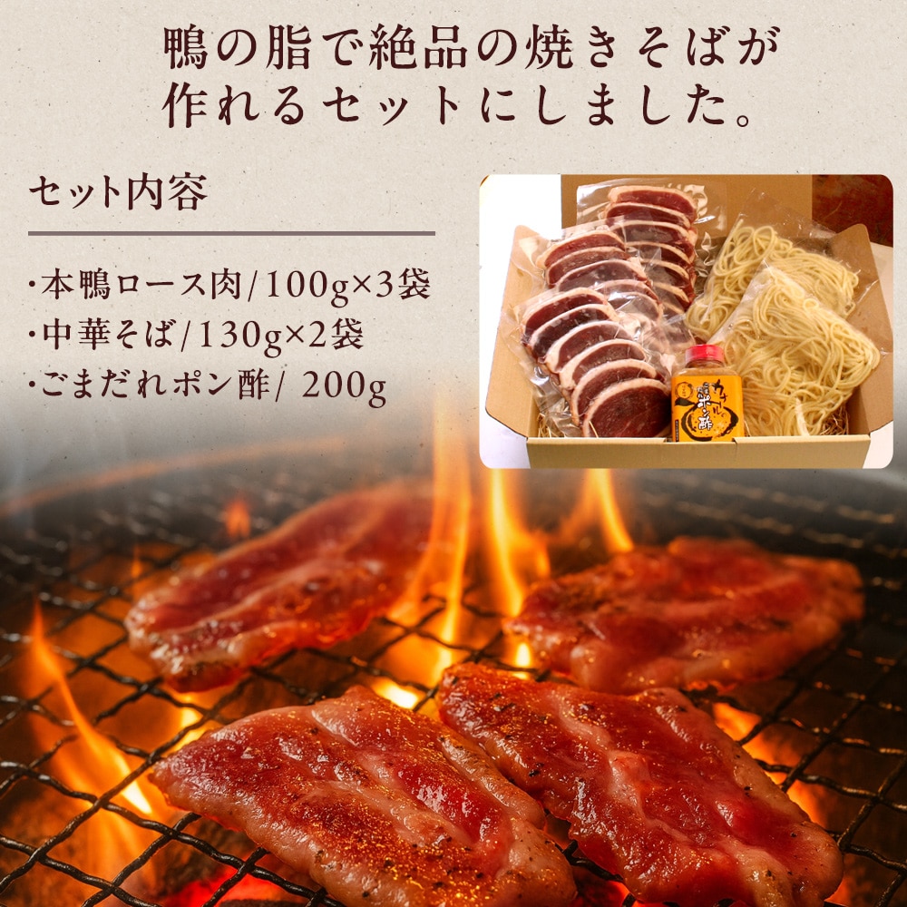 鴨本来の濃厚な味わいが楽しめる!ヘルシーな本鴨の脂を焼きそばや野菜にからませて食べる、新感覚の焼肉料理。セットに含まれるこだわりの無添加だれは、長年の期間を費やし完成させた鴨焼肉専用の特製ポン酢です。 [お歳暮 お中元 ギフト プレゼント]