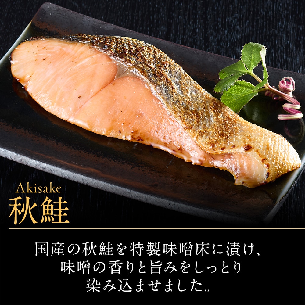 【秋鮭西京漬け】アキサケ(北海道)、みそ(大豆を含む)、調味粕(酒粕、還元水あめ、食塩)、砂糖結合水あめ、発酵調味料、砂糖、食塩