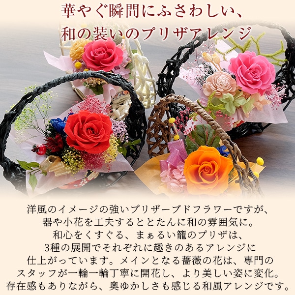 | プリザーブドフラワー(茶カゴ/オレンジバラ) | |