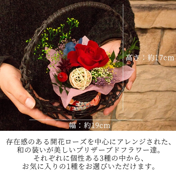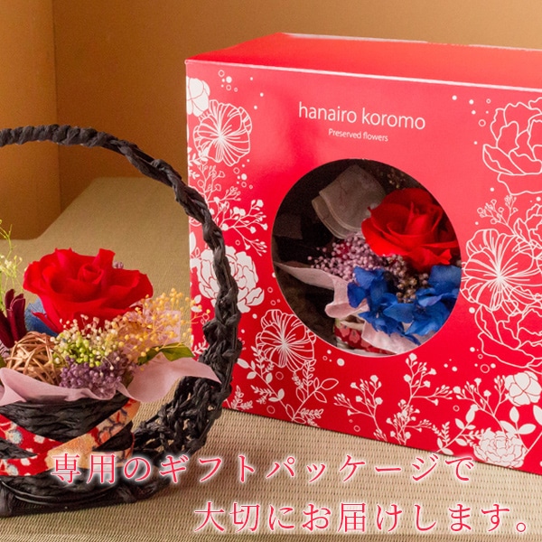 | プリザーブドフラワー(黒カゴ/赤いバラ) | |