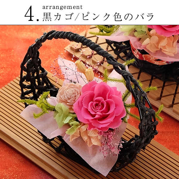 | プリザーブドフラワー(黒カゴ/ピンクバラ) | |