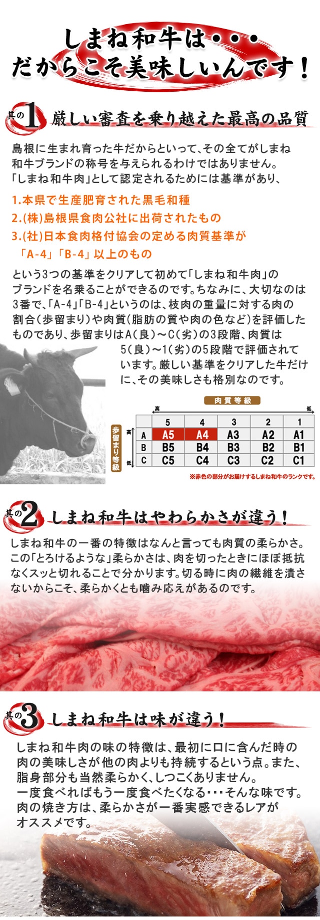 口の中いっぱいに広がる、上質で甘みのある脂の旨みと肉汁の美味しさ!島根県が誇る和牛肉の最高峰を是非ご賞味ください。