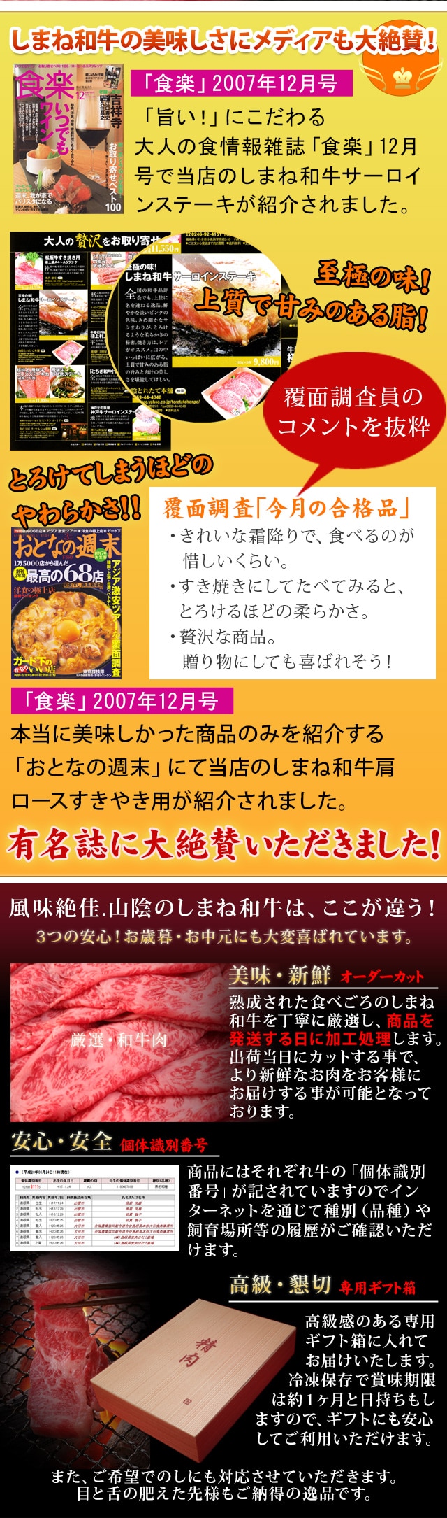 口の中いっぱいに広がる、上質で甘みのある脂の旨みと肉汁の美味しさ!島根県が誇る和牛肉の最高峰を是非ご賞味ください。