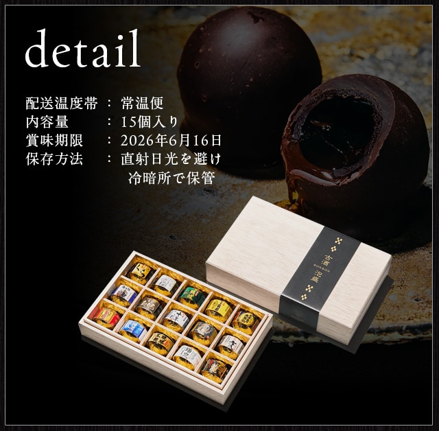 日本最古の蒸留酒として約六百年の歴史を持つ、沖縄の泡盛。 厳選された古酒泡盛と石垣島の海水を100%使用した「石垣の塩」をブレンドしました。まろやかな甘さの県産のきび糖と合わせ、ダークチョコに閉じ込めており、「石垣の塩」に含まれるほどよい塩味が、古酒泡盛の味をより引き立てます。