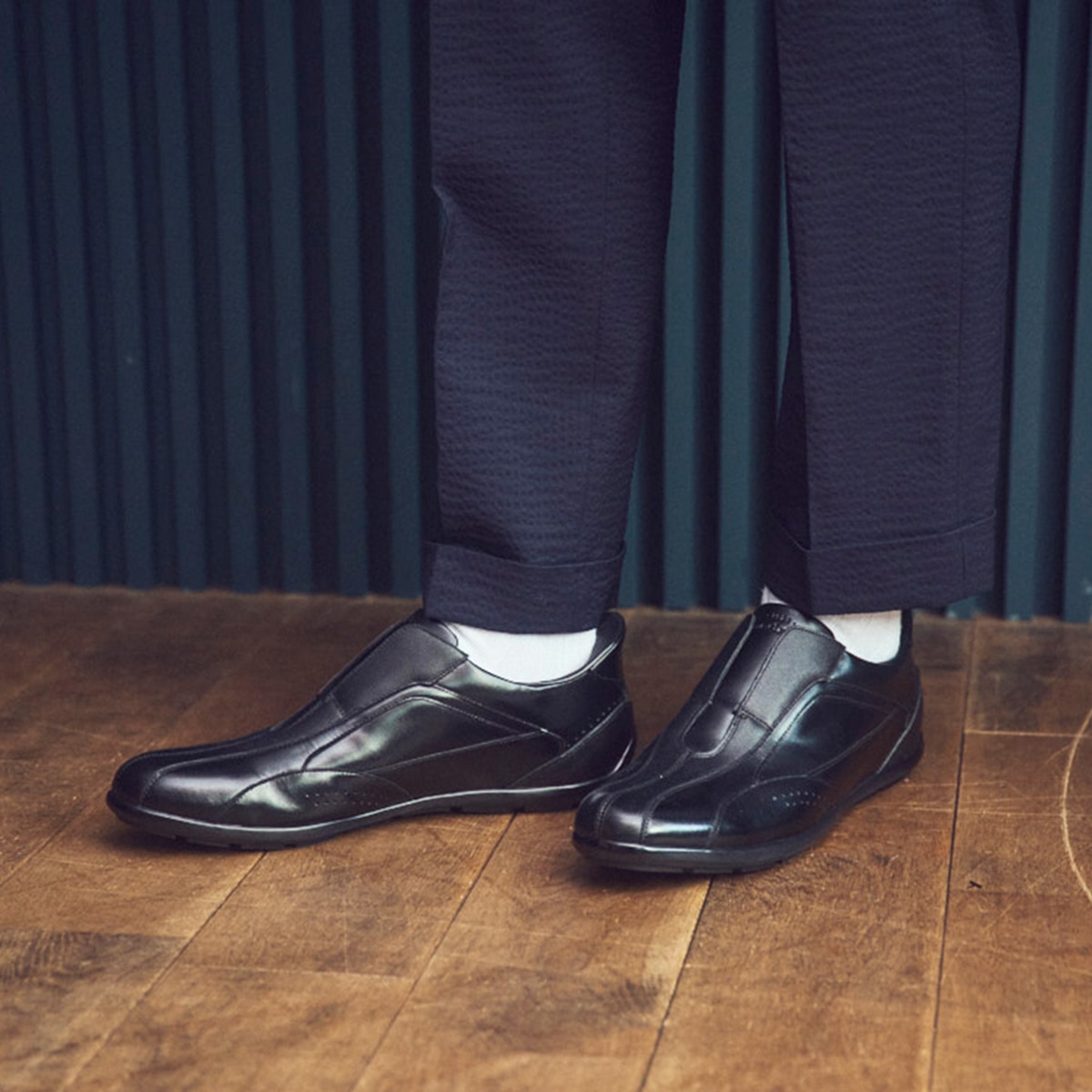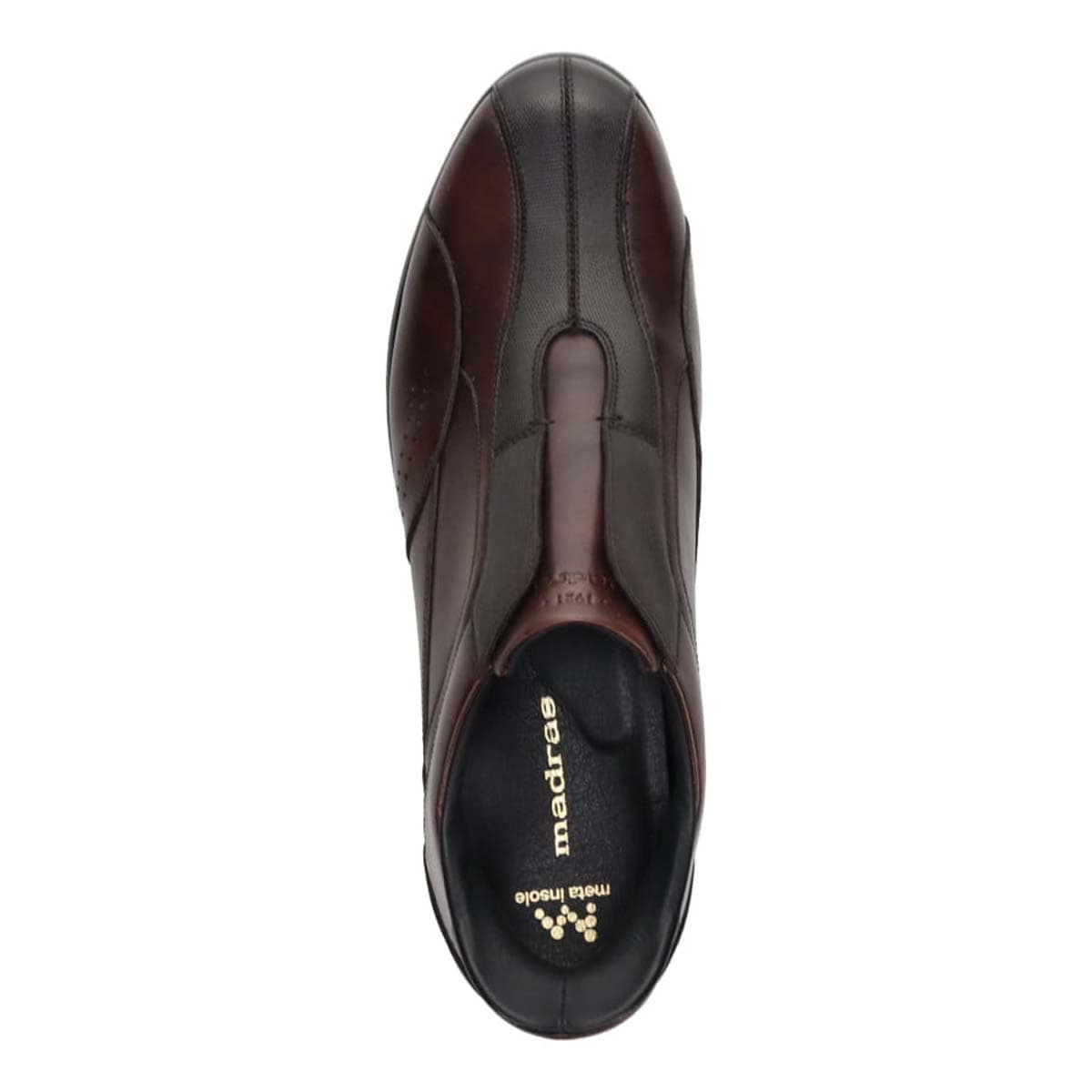 ◇マドラス madras メタインソール搭載シューズ クイックフィット カジュアルレザースニーカー◇さっと履けて、しっかり歩ける。品格と機能を備えた大人のレザースニーカー。madras M503MTは、洗練されたレザーの質感に快適性を融合させたスリッポンタイプのレザースニーカーです。通勤や休日のお出かけ、旅行まで幅広いシーンで活躍するスマートな一足です。アッパーには柔らかく上質なキップレザーを使用し、自然な光沢と足なじみの良さが魅力です。靴ベラ不要で履けるQuick fit構造により、忙しい朝や外出先でもスムーズな着脱が可能。足裏の3点アーチをサポートするmetaインソールが、長時間の歩行を快適にサポートします。軽量比重ゴムソールはしっかりとした厚みとクッション性を持ち、足への負担を軽減。セメント製法による軽やかな仕上がりで、柔軟な履き心地を実現しています。脱ぎ履きの多いライフスタイルの方や、移動が多く歩きやすさを重視する方におすすめです。機能と品格を備えた一足が、日常をもっと快適にしてくれます。【metaインソール】唯一無二の履き心地を実現したmetaインソールはマドラス株式会社独自の開発ノウハウと株式会社タナックの超柔軟ゲル素材「クリスタルゲル®」を用いて開発。足裏から姿勢を整え、快適な歩行をサポート。特徴①足裏3つのアーチを支え、正しい姿勢をサポート。②あらゆる足裏形状にもフィットする超柔軟ゲル素材「クリスタルゲル®」を採用。③「クリスタルゲル®」はその安全性から医療分野でも活用されています。④異なる硬度で配置し直接効果的にサポートします。⑤理想的な足圧分布で疲労軽減する効果があります。⑥高反発弾性により快適な歩行をサポートします。