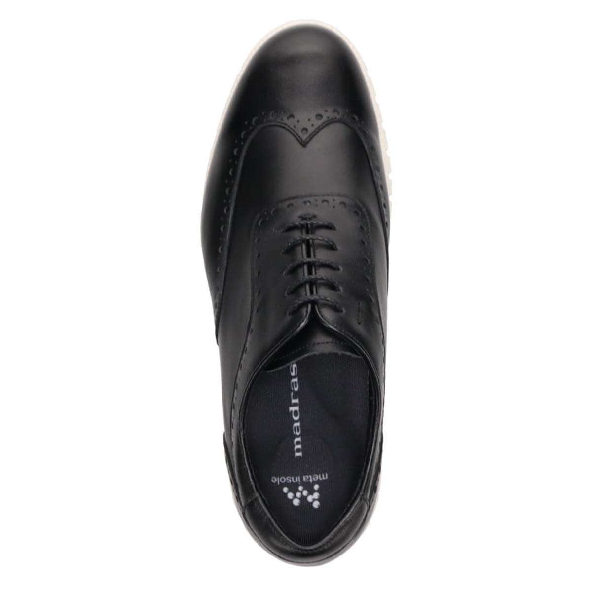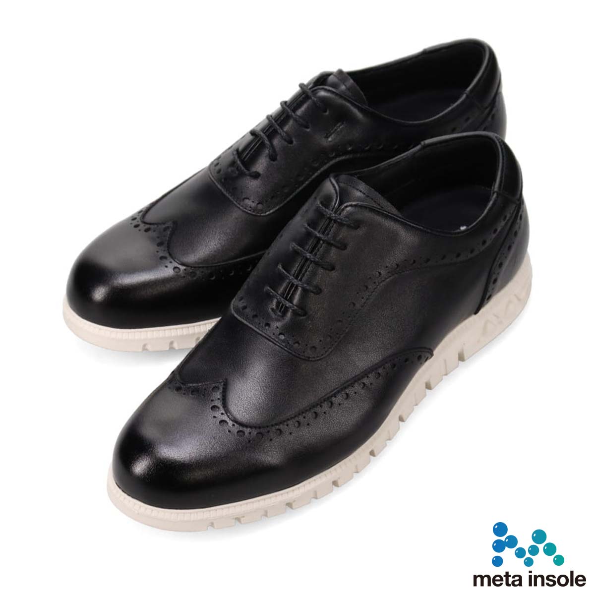 madras M8853MTは、伝統的なウィングチップデザインに高機能を融合させた、大人のための全天候型レザーシューズです。ビジネスカジュアルからゴルフシーンまで、スタイルと機能性を両立した一足として活躍します。アッパーには滑らかで上質なキップレザーを採用し、自然な光沢とソフトな足あたりで足元に品格をプラス。メダリオン(穴飾り)を施したウィングチップの内羽根デザインが、クラシックな中にも洗練された印象を演出します。4cm×4時間の防水機能を備えており、急な雨にも対応可能。metaインソールが足裏をしっかり支え、長時間の歩行やゴルフラウンドでも疲れにくい設計です。軽量でグリップ性に優れたIPラバーソールを採用し、街中からフィールドまで快適な歩行をサポート。セメント製法により足なじみが良く、履き始めからストレスなく快適に着用できます。天候を問わずアクティブに過ごしたい方や、日常と趣味の時間を一足でスマートにこなしたい方におすすめです。クラシックな美しさと高機能を備えた、現代のライフスタイルにフィットするレザーシューズです。【metaインソール】唯一無二の履き心地を実現したmetaインソールはマドラス株式会社独自の開発ノウハウと株式会社タナックの超柔軟ゲル素材「クリスタルゲル®」を用いて開発。足裏から姿勢を整え、快適な歩行をサポート。特徴①足裏3つのアーチを支え、正しい姿勢をサポート。②あらゆる足裏形状にもフィットする超柔軟ゲル素材「クリスタルゲル®」を採用。③「クリスタルゲル®」はその安全性から医療分野でも活用されています。④異なる硬度で配置し直接効果的にサポートします。⑤理想的な足圧分布で疲労軽減する効果があります。⑥高反発弾性により快適な歩行をサポートします。