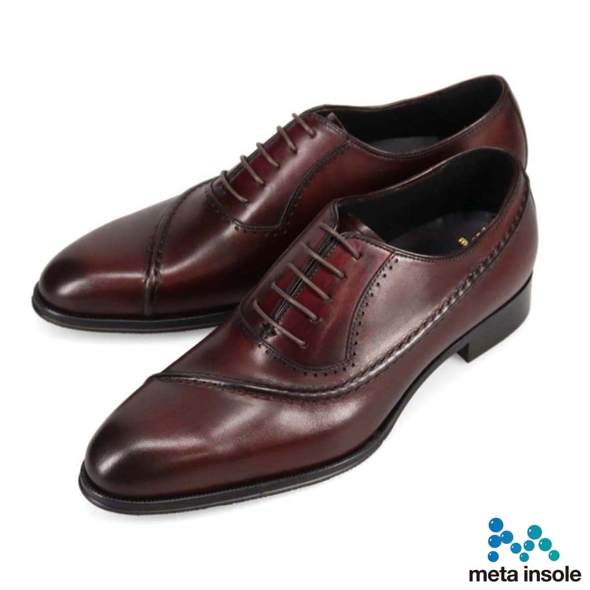 ◇『パティーヌ仕上げ』マドラス madras メタインソール搭載シューズ イタリアンカーフ プレーントゥドレスシューズ◇上質なカーフのヌメ革を使用。時間とともに風合いを増す天然素材の美しさを、熟練職人が一足ずつ丁寧に手作業で塗り重ね、あえて刷毛ムラを残し独特な表情と、奥行きのある深い色合いを生み出しました。同じものは二つとない、唯一無二の仕上がりをお楽しみいただけます。<br>製法には、足に馴染みやすく、しなやかな履き心地を実現するマッケイ製法を採用。軽量でありながら、スマートなシルエットと柔軟な屈曲性を兼ね備え、履くほどにフィット感が増していきます。さらに、ソールの張り替えも可能なため、長く愛用できるのも魅力のひとつ。足裏から姿勢を補正し、快適な歩行をサポートするマドラス社製metaインソールを搭載(スタンダードタイプ)【metaインソール】唯一無二の履き心地を実現したmetaインソールはマドラス株式会社独自の開発ノウハウと株式会社タナックの超柔軟ゲル素材「クリスタルゲル®」を用いて開発。足裏から姿勢を整え、快適な歩行をサポート。特徴①足裏3つのアーチを支え、正しい姿勢をサポート。②あらゆる足裏形状にもフィットする超柔軟ゲル素材「クリスタルゲル®」を採用。③「クリスタルゲル®」はその安全性から医療分野でも活用されています。④異なる硬度で配置し直接効果的にサポートします。⑤理想的な足圧分布で疲労軽減する効果があります。⑥高反発弾性により快適な歩行をサポートします。