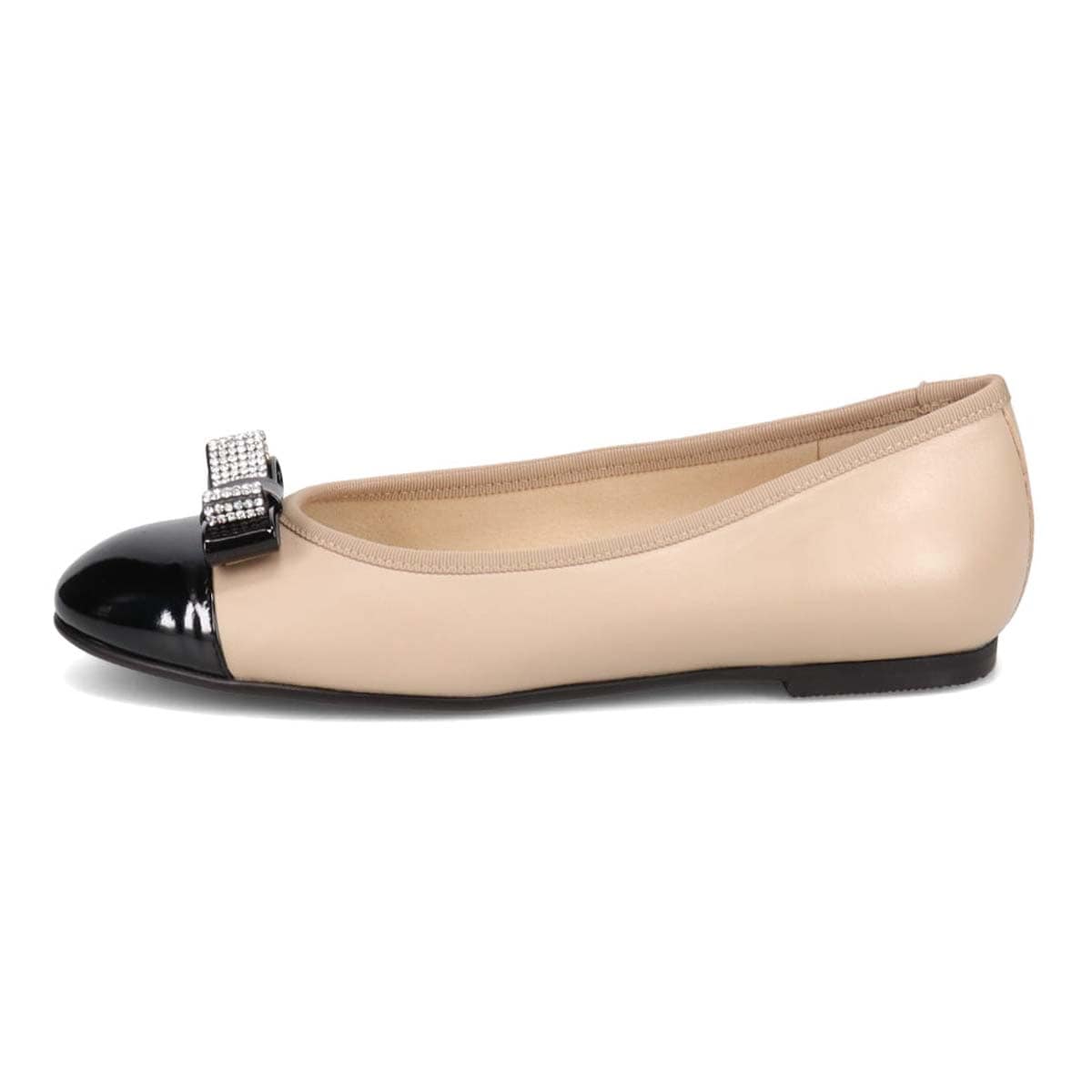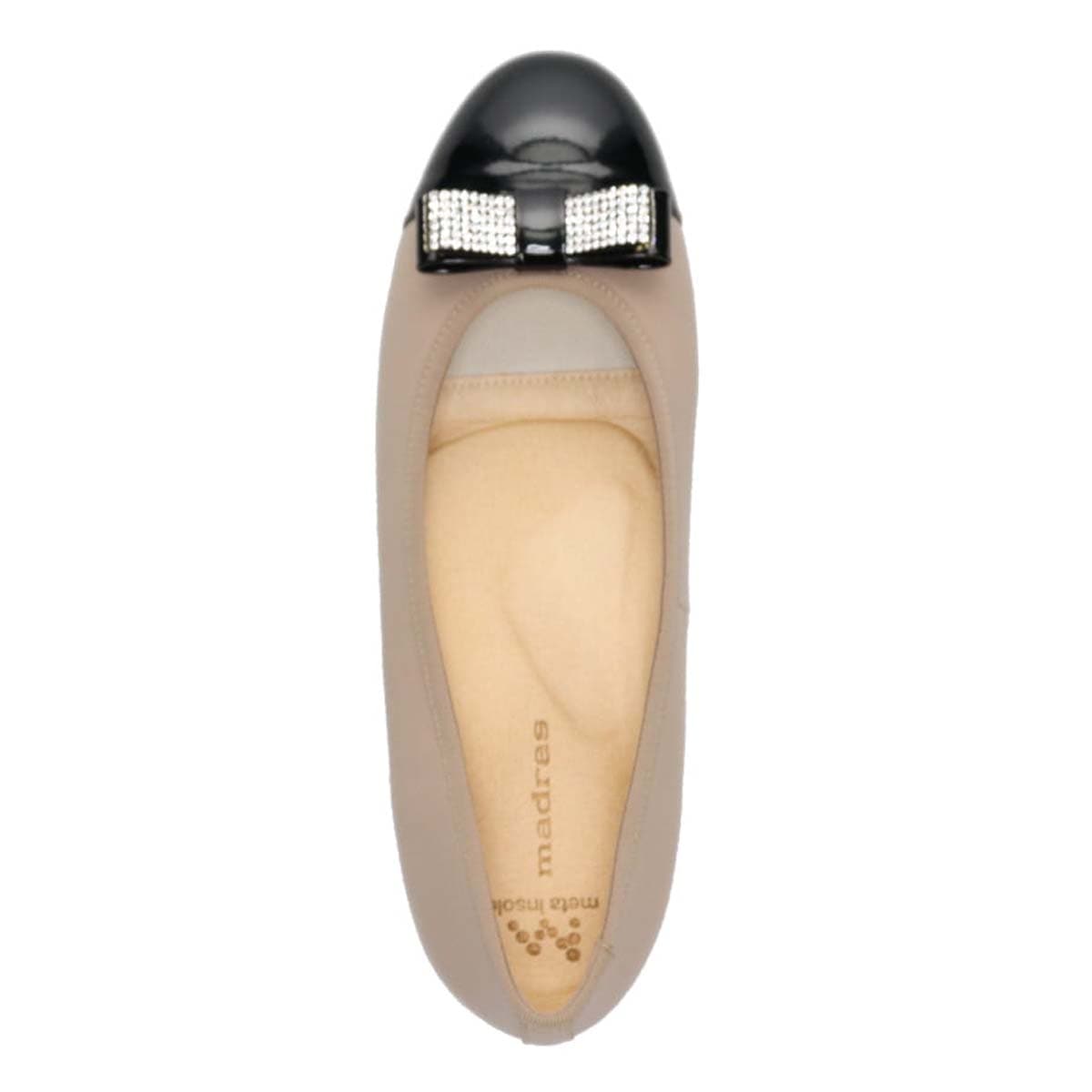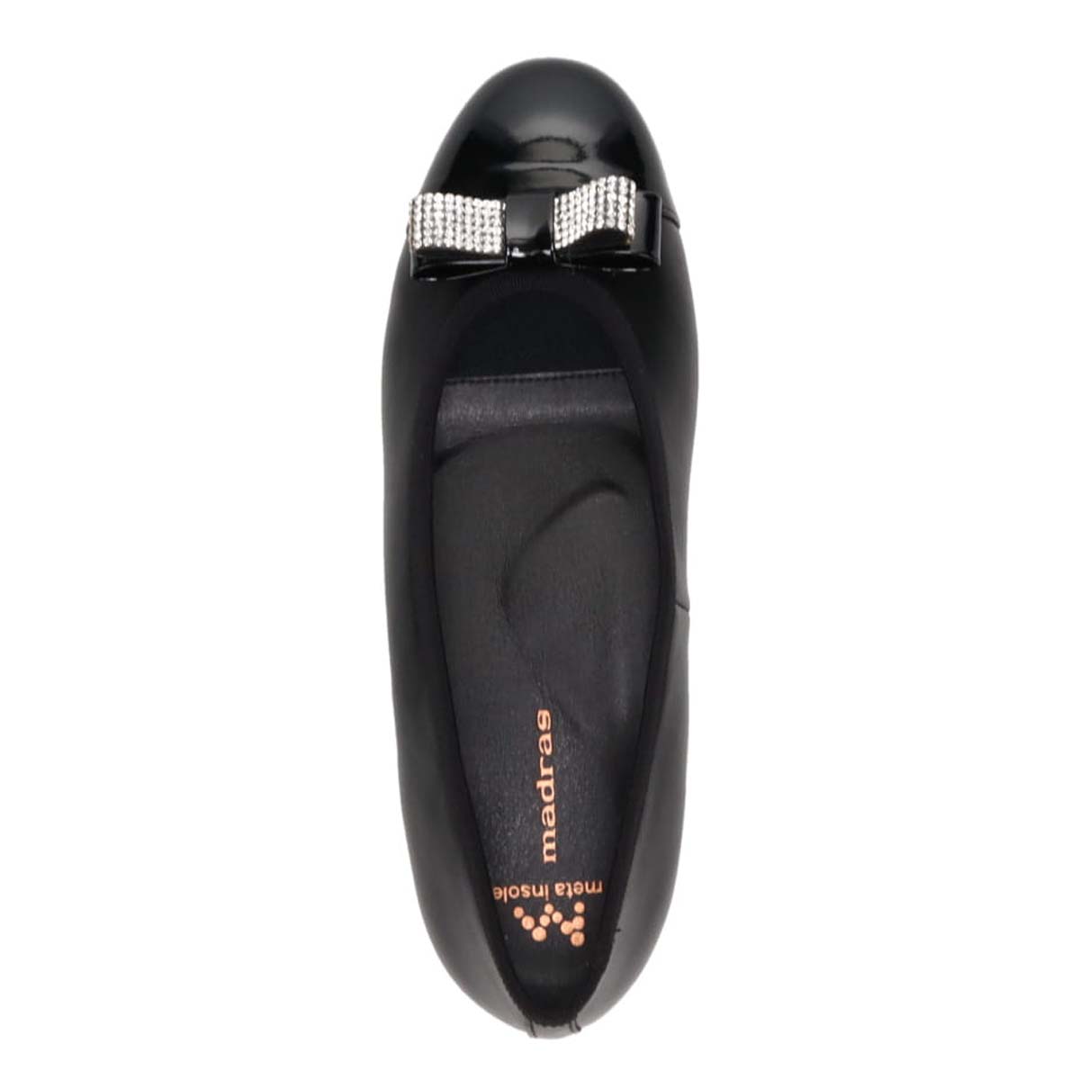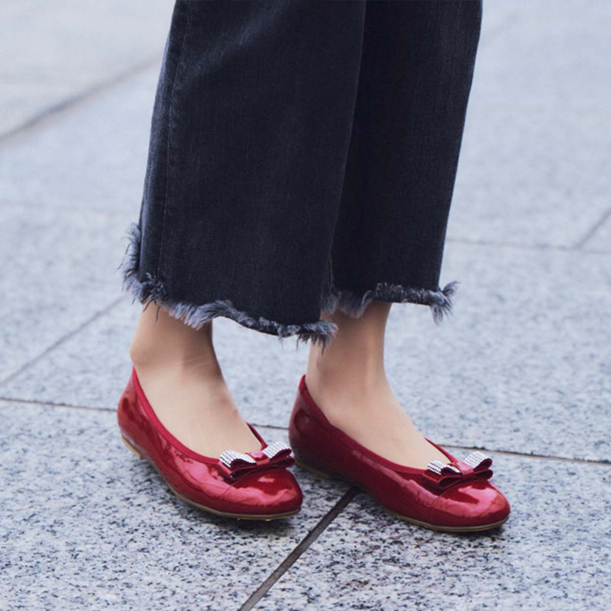 幅広いスタイリングに華やぎをもたらすメタインソール搭載の万能バレーシューズが登場。ベーシックなバレーシューズデザインにホットフィックス石使いでゴージャスなリボンがアクセントに。メタインソール搭載で素足より気持ち良いフィット感で華やかな足元を演出。ぺたんこながらフォーマルからカジュアルまで幅広いスタイリングにマッチ。