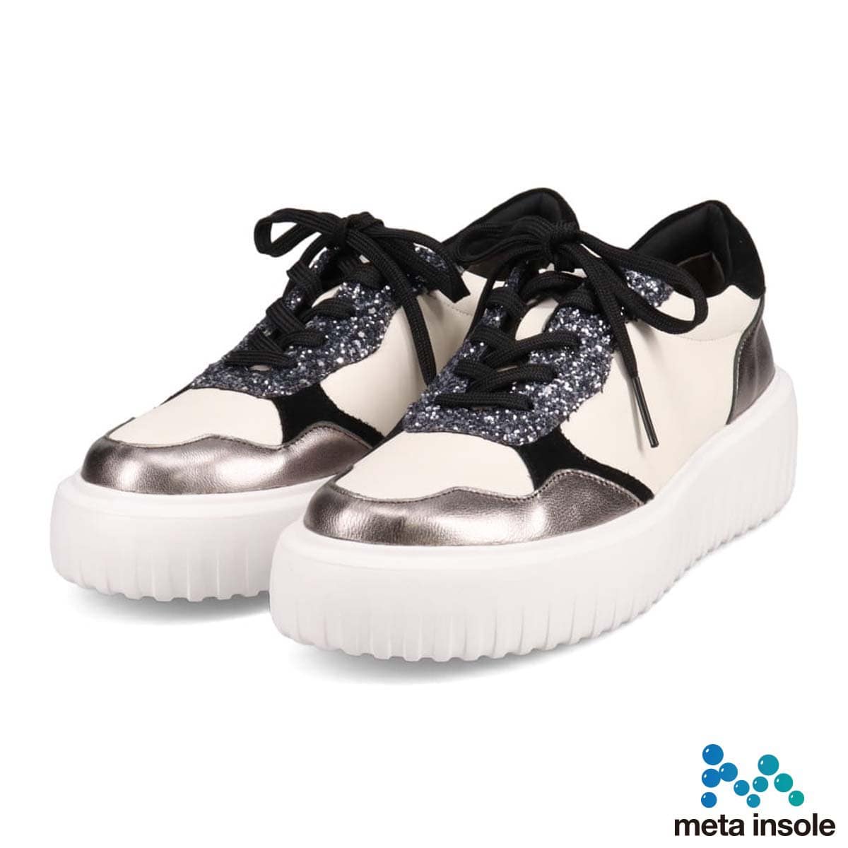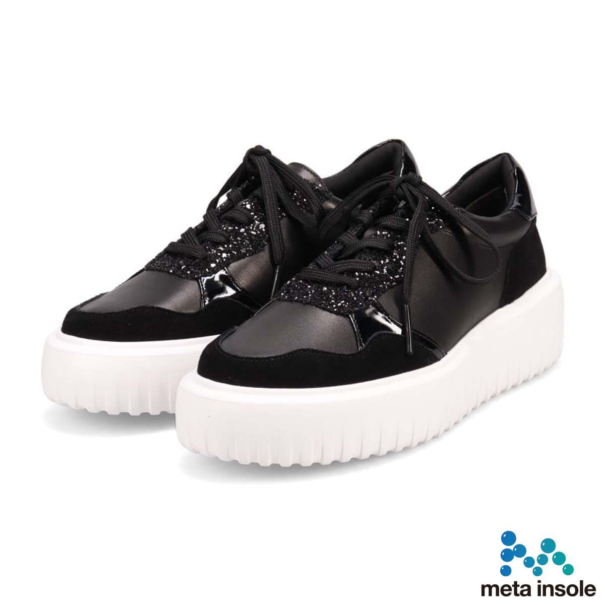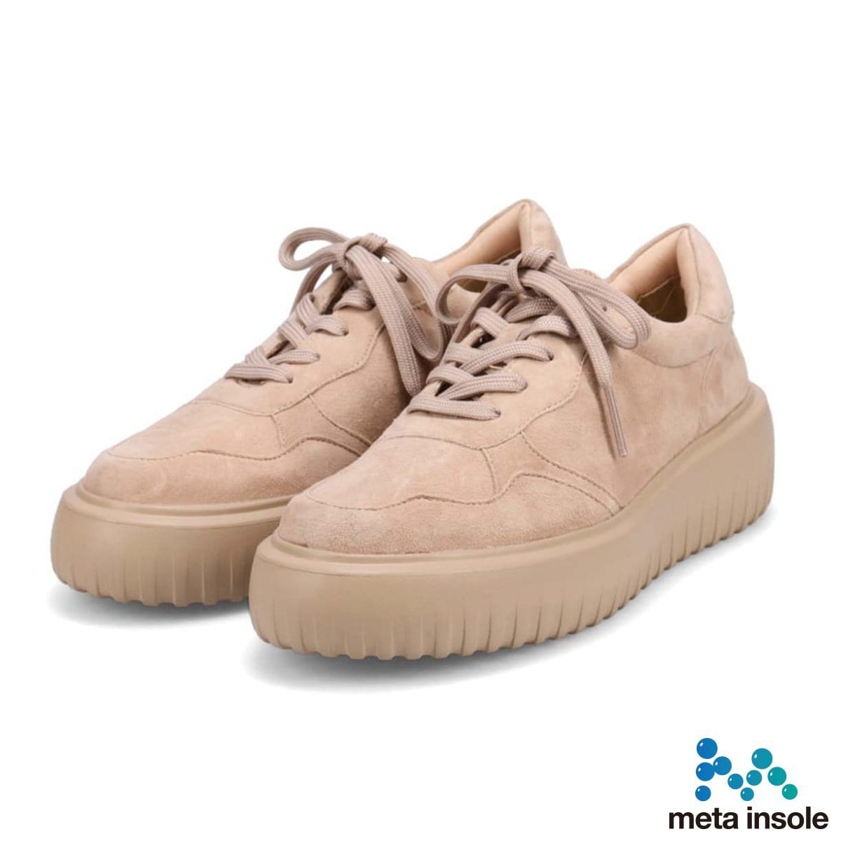 ◇マドラス madrasリカバリーシューズ metaインソール搭載 トレンド感とスタイルアップが叶う厚底スニーカー◇カジュアルなデザインながら素材コンビでトレンド感とカッコよさを出したデザイン。安定感抜群の厚底ソールで脚長効果とスタイルアップも叶えます。ベージュスエードは柔らかな質感でナチュラルな印象、ブラックは洗練された大人の魅力を引き立て、ホワイト/コンビは華やかなアクセントが効いたスタイリッシュなデザインとなっています。カジュアルな装いにもきれいめスタイルにも合わせやすく、ファッションの幅を広げる一足です。スタンダードメタ採用。≪表素材≫BLA、WHT/C:テキスタイル+羊革+牛革、BEG-S:羊革【特徴】①アーチサポート(アーチを支えて足圧を分散し疲労を軽減)②姿勢補正③歩行サポート④指圧効果⑤高反発弾性(衝撃を吸収して足の負担を軽減し優れた履き心地を実現)⑥高伸張性(1000%以上伸びる伸張性があり経年劣化がなく、足裏にフィット)土踏まずのゲルを硬めにしているため、歩く度に土踏まずが軽く刺激されることで、土踏まずへの適度なマッサージ効果を発揮します。立っているときに足裏の3点のアーチをしっかり支え、足裏にかかる圧力を足裏全体に分散して姿勢を安定させ、美しい歩行を実現しています。【metaインソール】唯一無二の履き心地を実現したmetaインソールはマドラス株式会社独自の開発ノウハウと株式会社タナックの超柔軟ゲル素材「クリスタルゲル®」を用いて開発。足裏から姿勢を整え、快適な歩行をサポート。