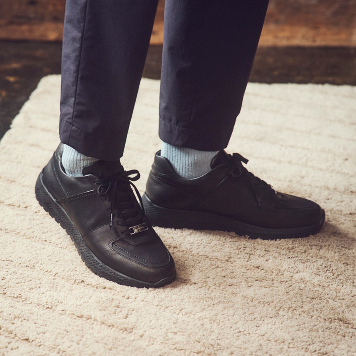 上質レザーで仕立てた大人の一足。厚みのあるソールが安定した歩行をサポートしながら、すっきりとスマートなフォルムで野暮ったさを排除。アッパーにはマットな質感が魅力の上質レザーを使用し、太めの同色ステッチがさりげないアクセントに。特徴的なアウトソールパターンは、街中でも滑りにくく、実用性と個性を両立。