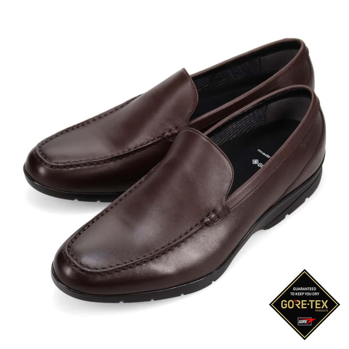 madrasWalk MW7703は、優れた防水性と快適な履き心地を兼ね備えた、大人のための全天候型スリッポンシューズです。雨の日でも安心して履けるGORE-TEX搭載モデルで、休日や通勤時の足元を快適にサポートします。アッパーには防水スムース素材を使用し、しなやかな質感と上品な光沢感を両立。ライニングにはGORE-TEXファブリクスを搭載しており、外部の水を遮断しながら内部の湿気を逃がし、ムレを抑えて快適さを持続します。中敷きにはOrthoLiteを採用し、クッション性・通気性・防臭性に優れ、長時間の使用でも足裏をやさしく支えます。アウトソールはグリップ力のある合成ゴムを使用し、濡れた路面でも安定した歩行を実現。セメント製法によって軽量で柔軟性があり、履き始めから足になじむ自然なフィット感を提供します。雨の日の外出や、脱ぎ履きの多いライフスタイルでもスマートに履きこなしたい方におすすめです。機能性とデザイン性を両立した、天候を問わず頼れるレザースリッポンです。