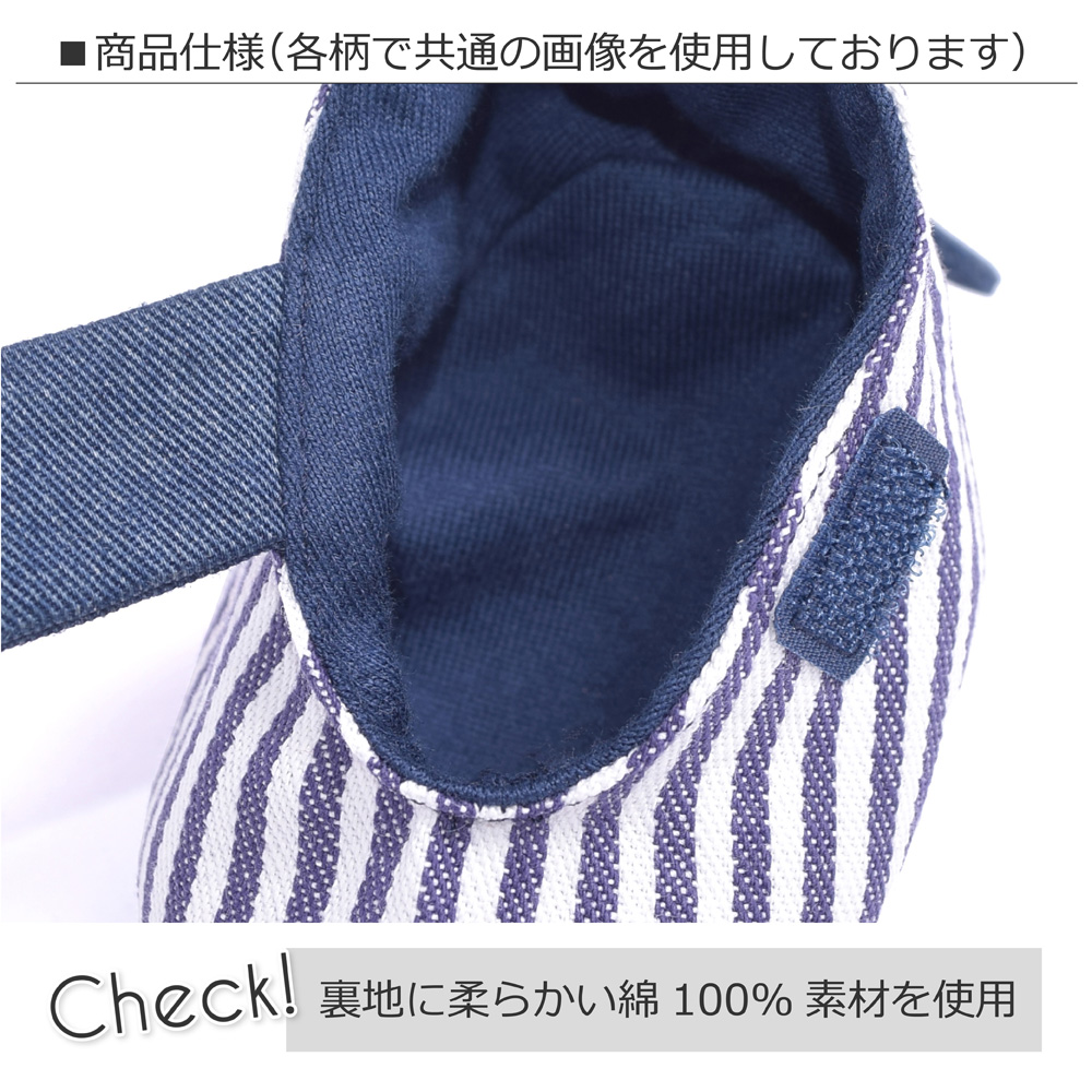 裏地はデリケートな赤ちゃんの肌にも優しい天竺素材。柔らかいコットン100%生地なので、足裏に汗をよくかく赤ちゃんも安心してお使いいただけます。