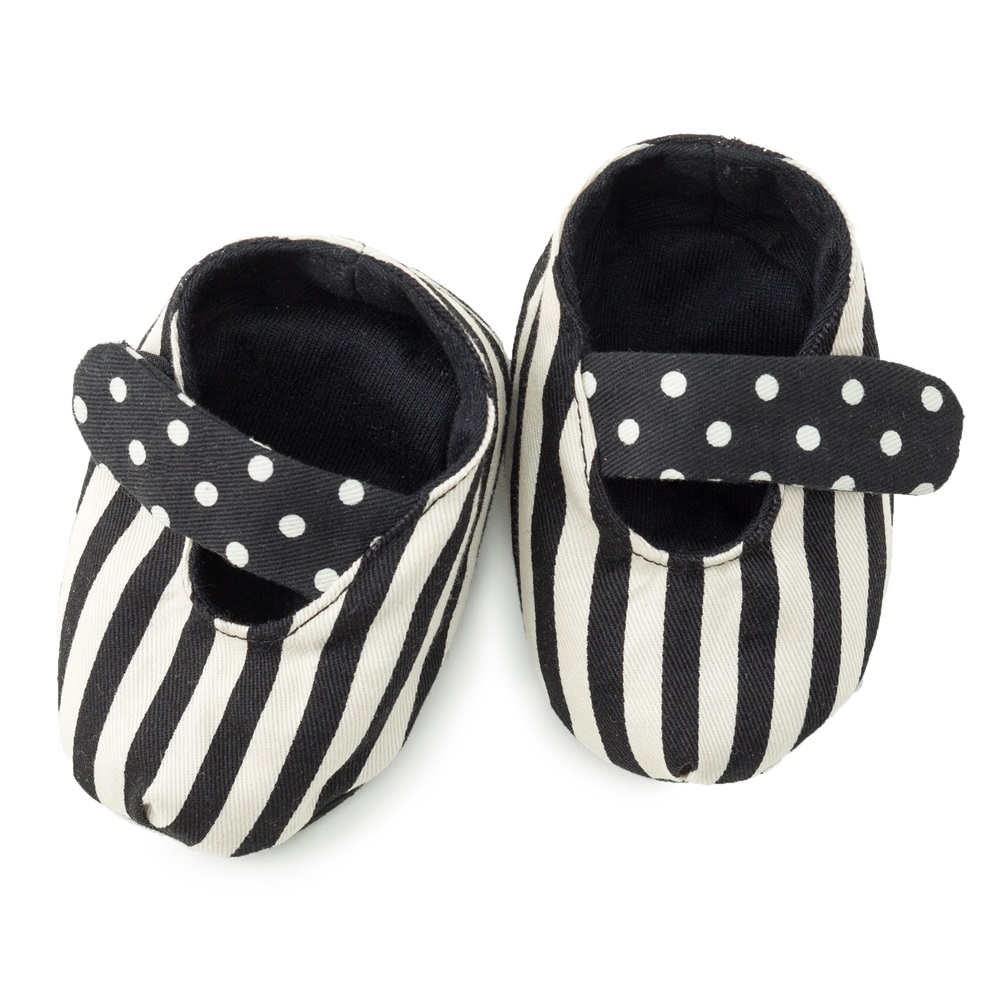 まだ歩けない新生児の赤ちゃんに最適な、布製のシューズ。赤ちゃんの足元を守ってくれるので、内履きとしてはもちろん、おでかけの際の足カバーとしてもOK。