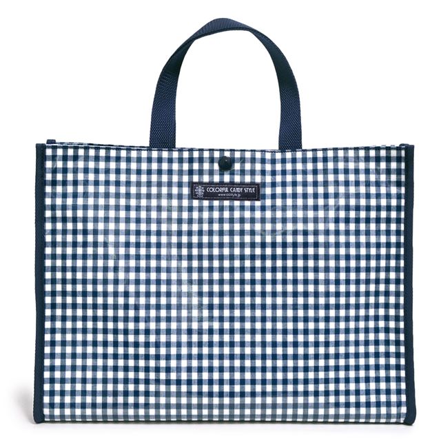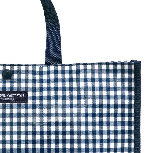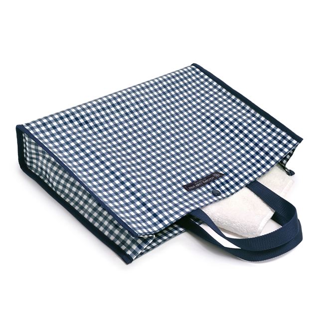 プールバッグ ラミネートバッグ(スクエアタイプ) チェック大・紺 ×紺